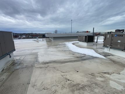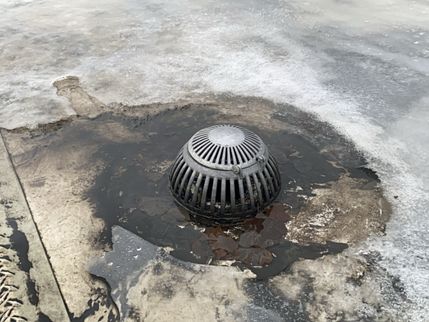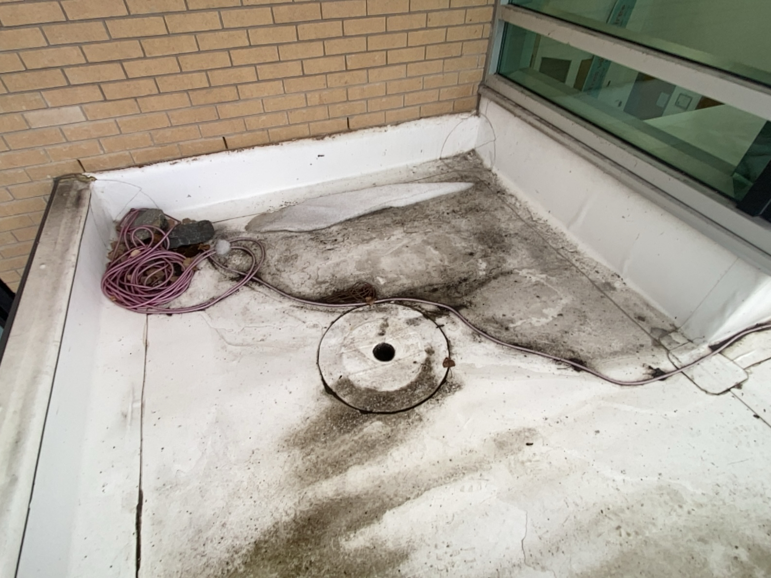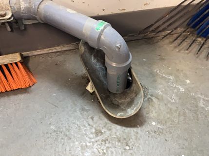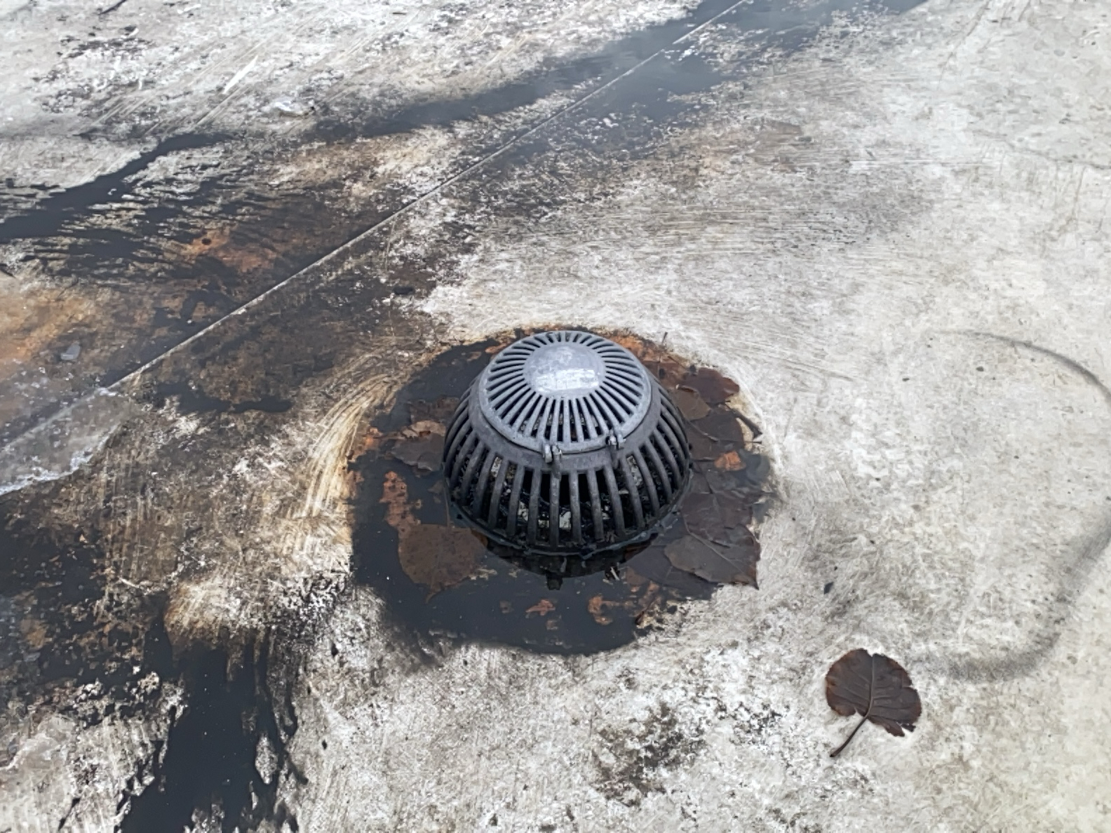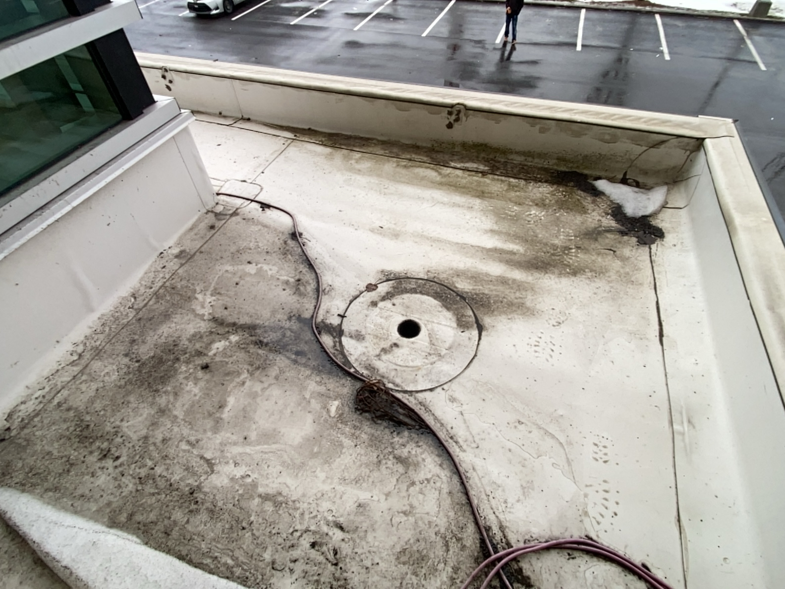 Grillage du drain de toit (crépine) manquant. Nous en recommandons l'installation afin d'éviter toute obstruction.