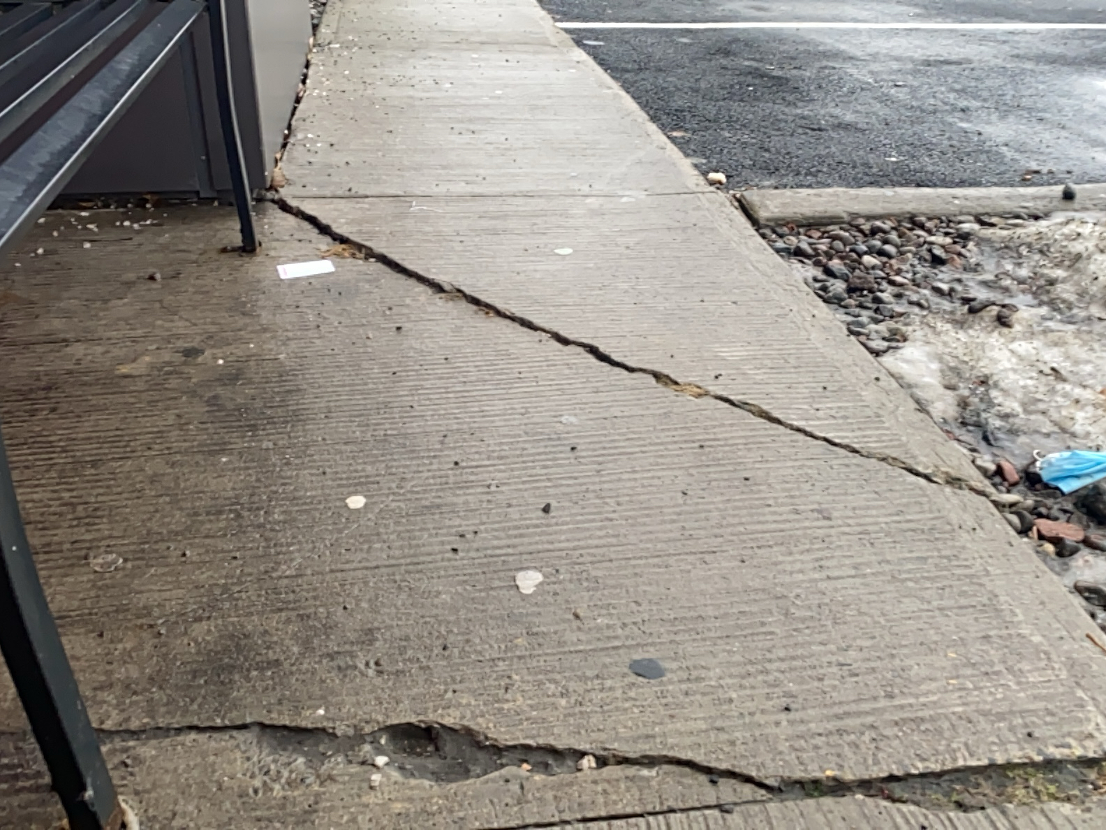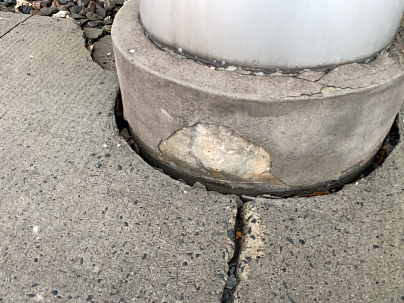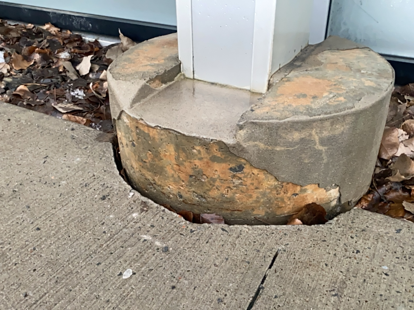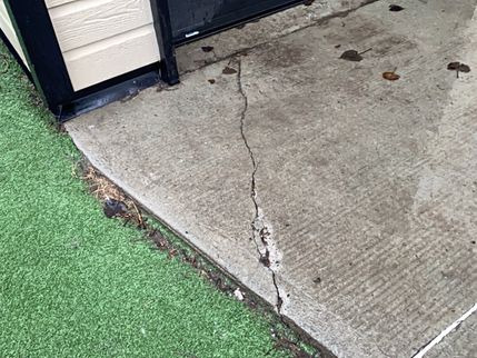 Endommagé et fissuré à plusieurs endroits. Nous recommandons de réparer et sceller les fissures afin d'éviter des dommages causés par l'eau. Nous recommandons de consulter un entrepreneur licencié afin d'évaluer et corriger cette situation