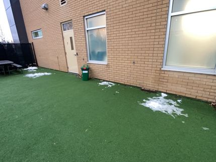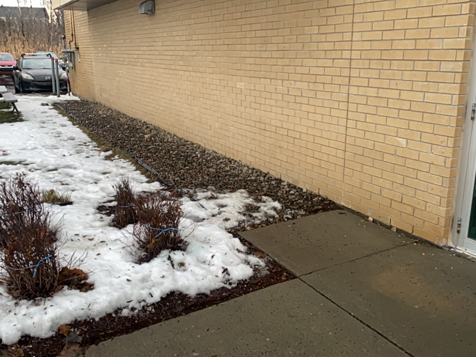 Pente de drainage inadéquate observée. Il y a accumulation d'eau et risque de formation de glace en période hivernale. Nous recommandons de corriger ceci.