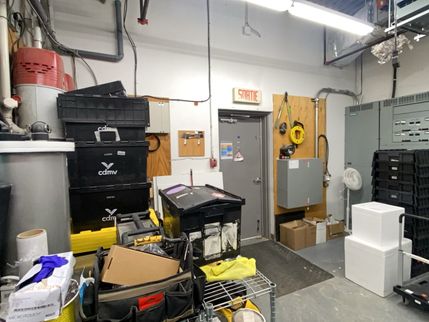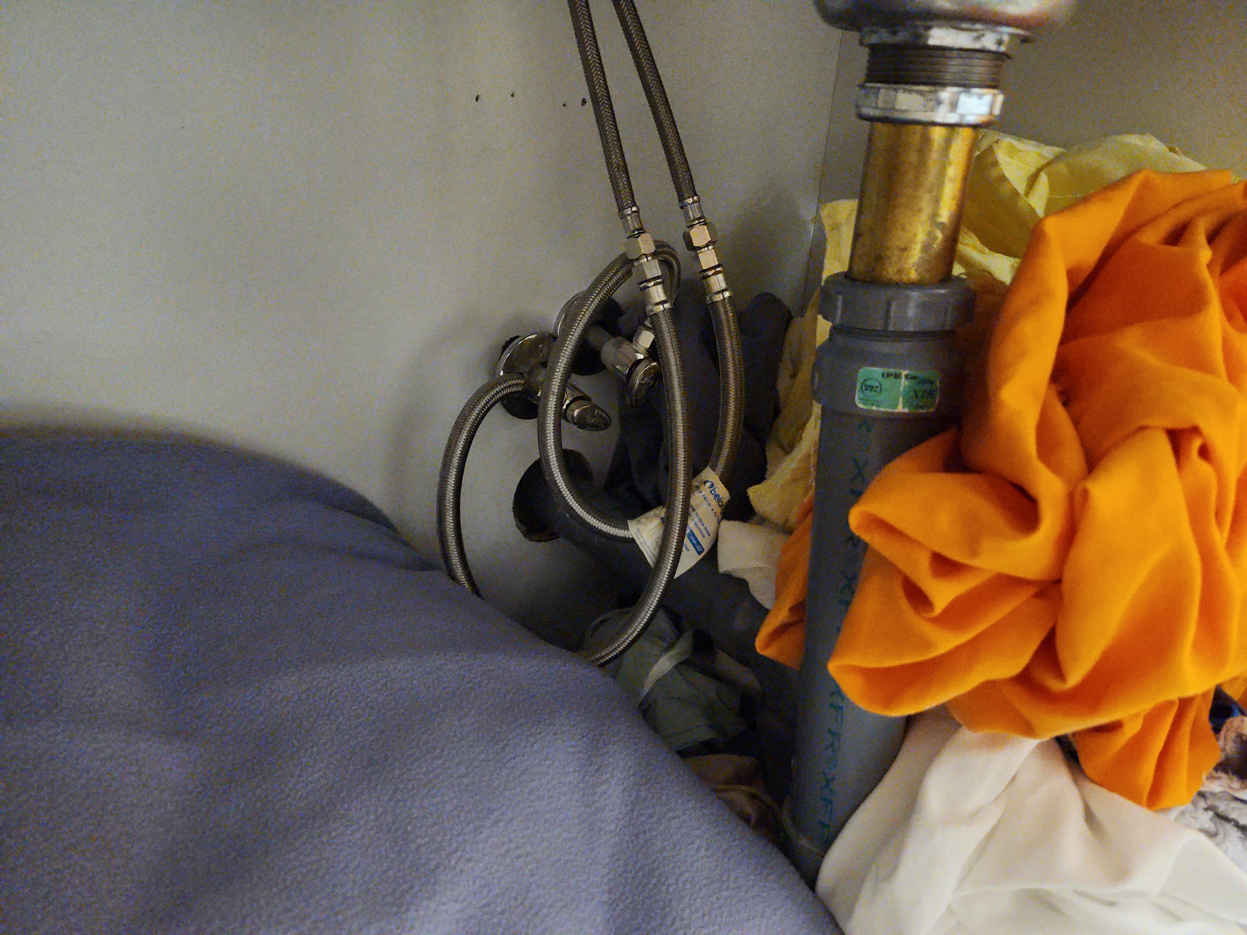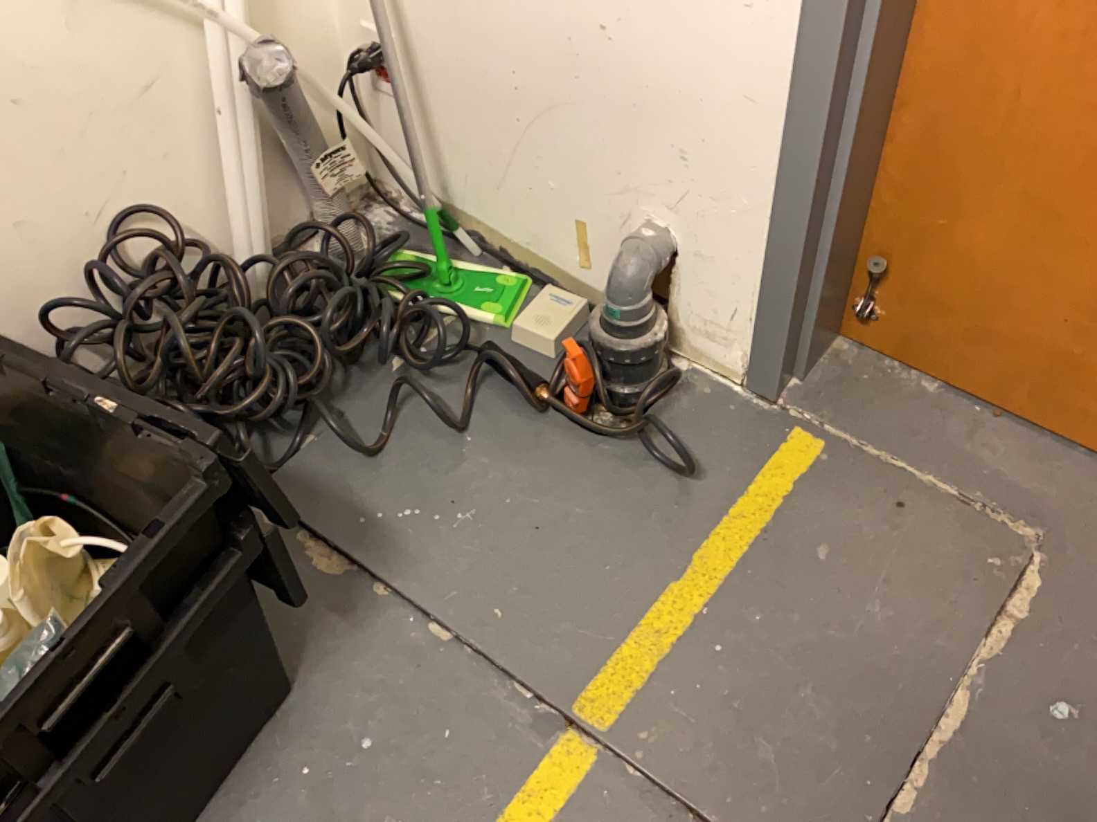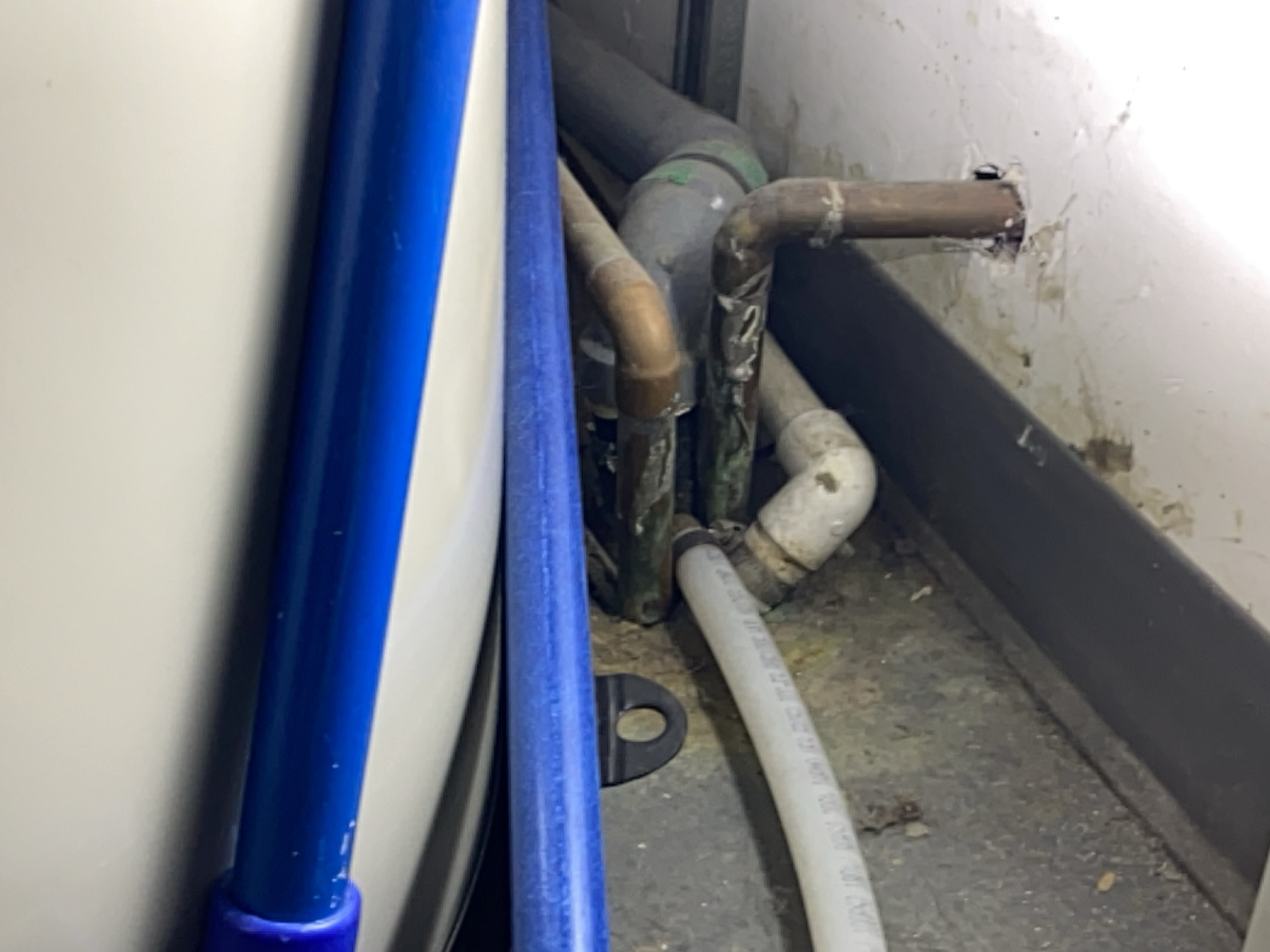 Appareil présent. Nous ne débranchons pas l'alimentation en eau de la laveuse, et n'opérons pas les valves. Celles-ci pourraient couler à n'importe quel moment et devraient faire partie d'un entretien régulier.