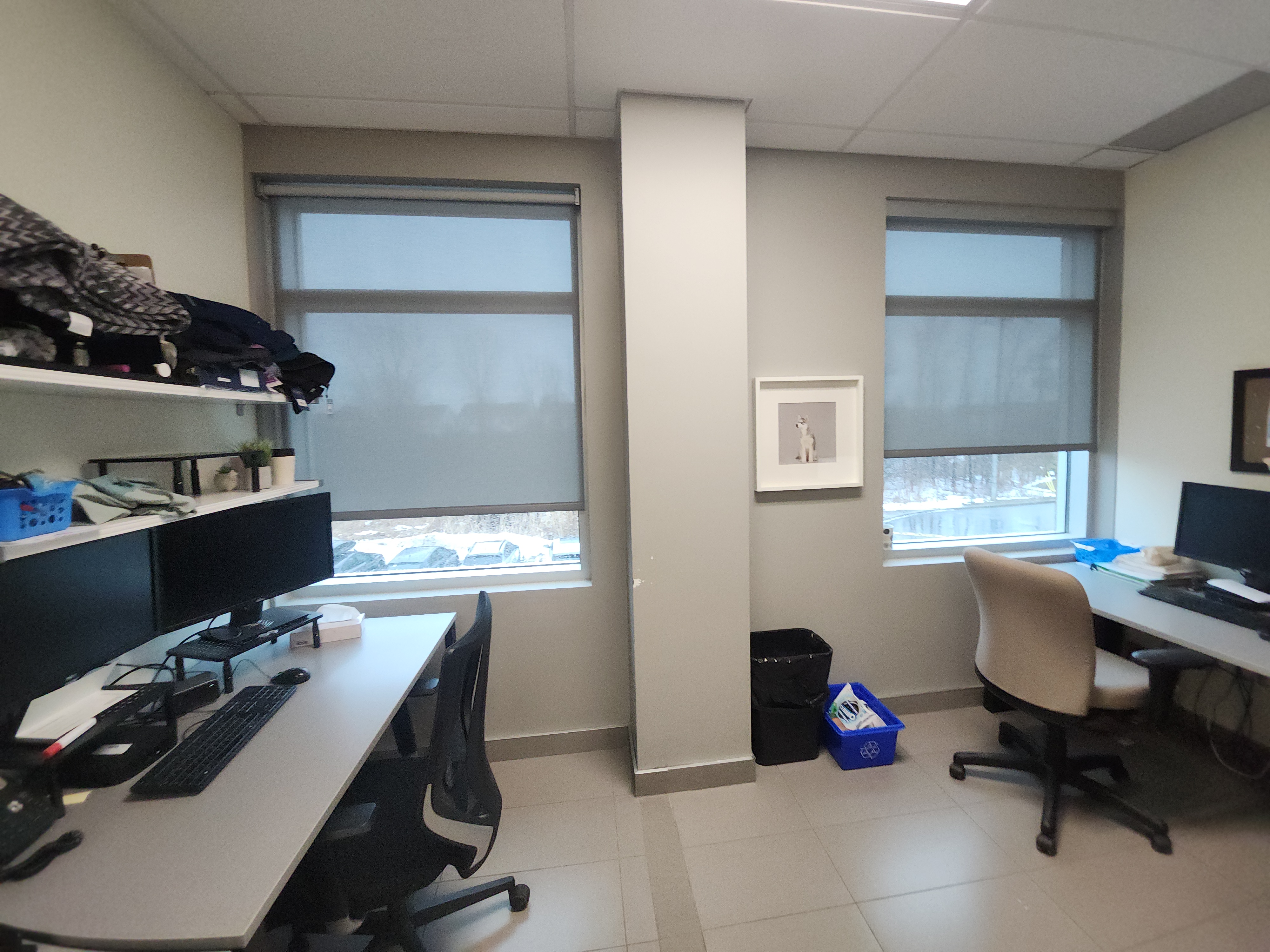 Notre examen de l'intérieur est visuel et nous l'inspectons en le comparant à des immeubles semblables et du même âge. Un nombre représentatif de portes et fenêtres ont été testées lors de l’inspection afin de vérifier leur fonctionnement. Veuillez noter que seules les anomalies seront inscrites au rapport. Il est recommandé de retirer les moustiquaires intérieures de toutes les portes et fenêtres durant la saison hivernale afin de permettre une circulation d'air adéquate à celles-ci. Le scellement du verre double thermique peut se briser en tout temps; l'éclairage, les tentures, et les conditions atmosphériques lors de l'inspection peuvent nous empêcher de déceler une défectuosité. Les considérations esthétiques ne sont pas prises en compte. Notre inspection est limitée aux endroits visibles et accessibles; des effets personnels et des meubles peuvent limiter l’accessibilité aux prises électriques, fenêtres, murs, planchers et autres composantes.