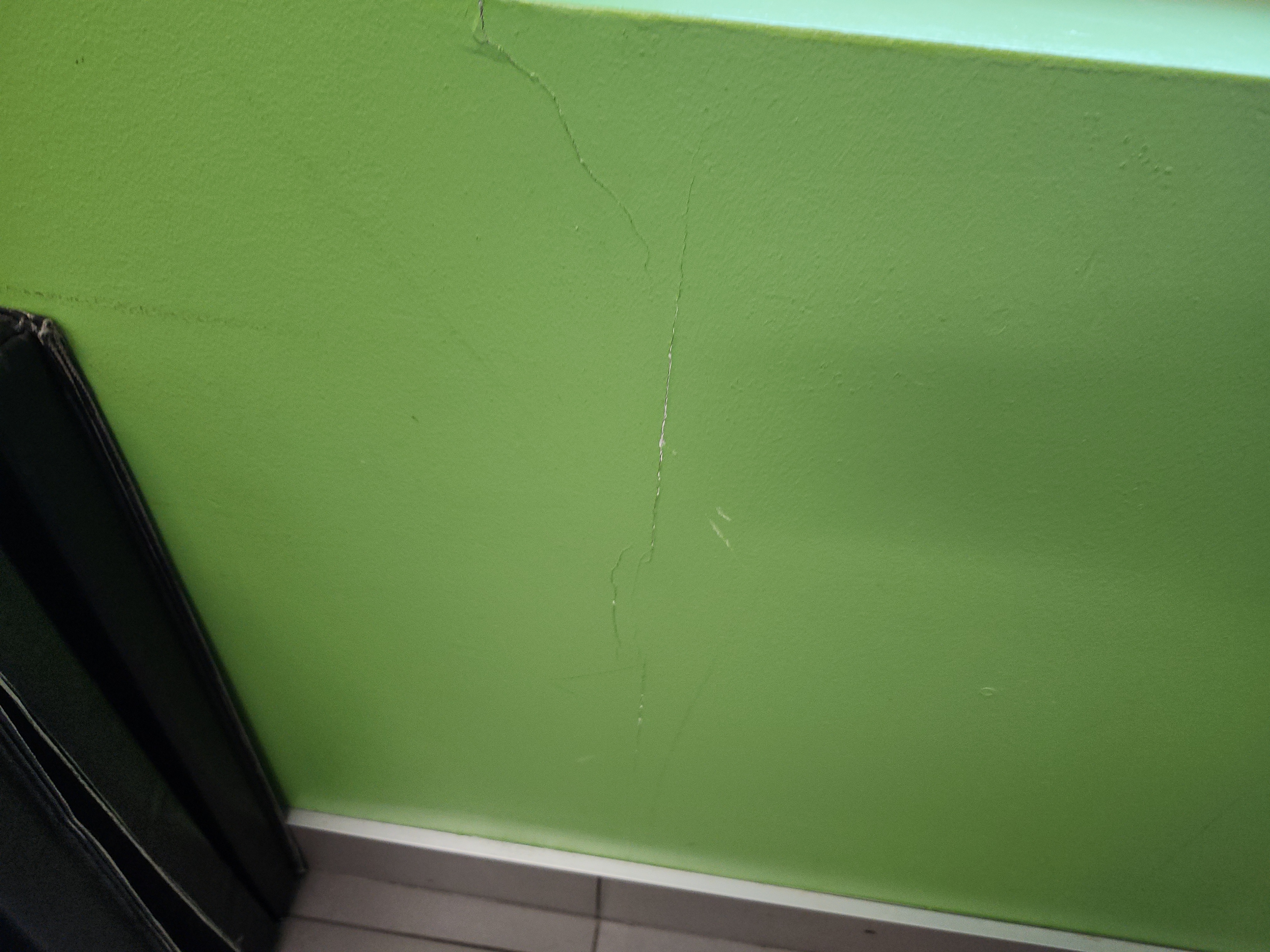 Fissures observées. Nous recommandons de réparer et sceller les fissures afin d'éviter des dommages causés par l'eau.
