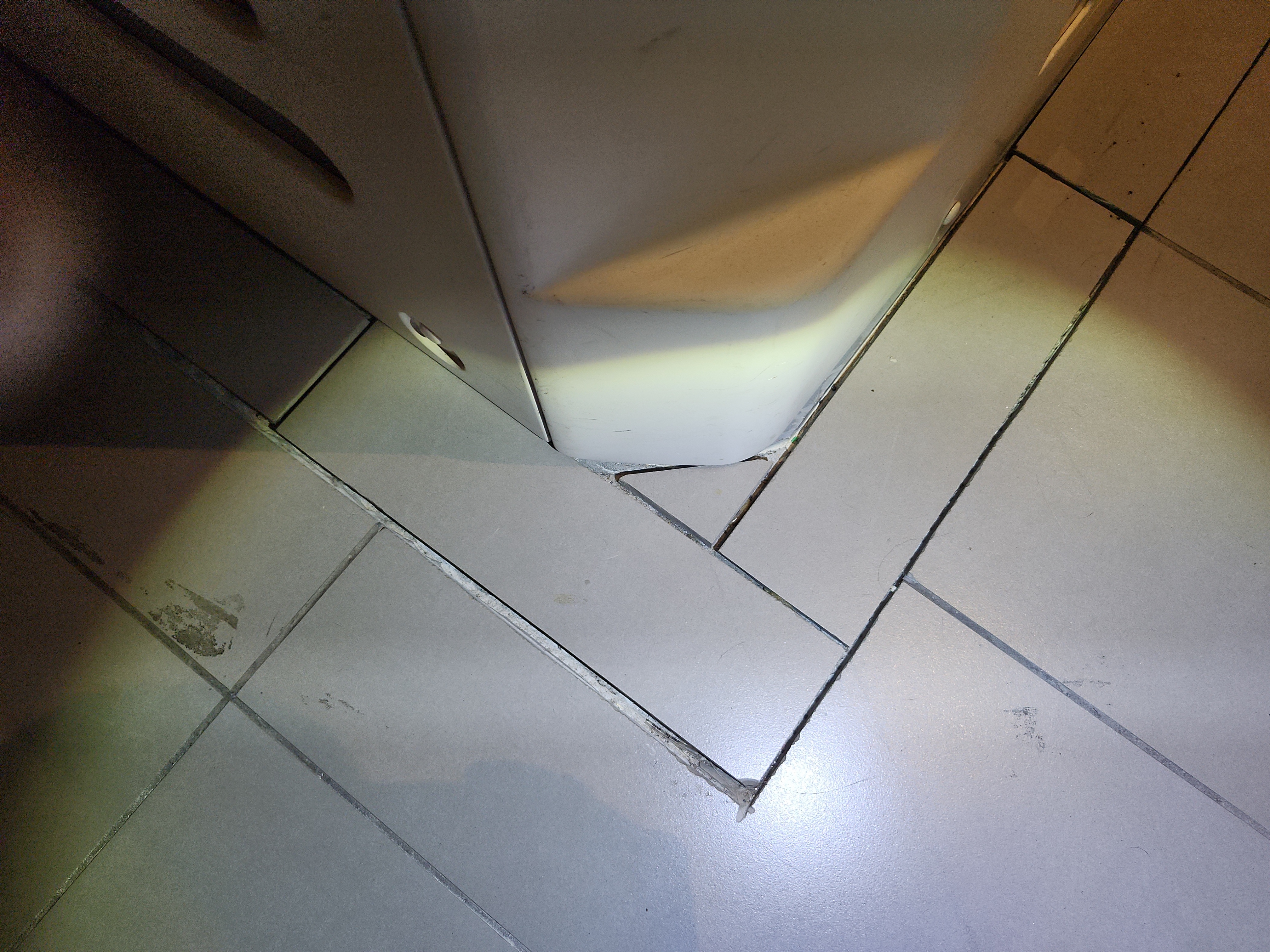 La laveuse n'est pas déplacée durant l'inspection afin d'éviter des dommages au plancher, notre inspection de l'espace sous et derrière l'appareil est limitée.