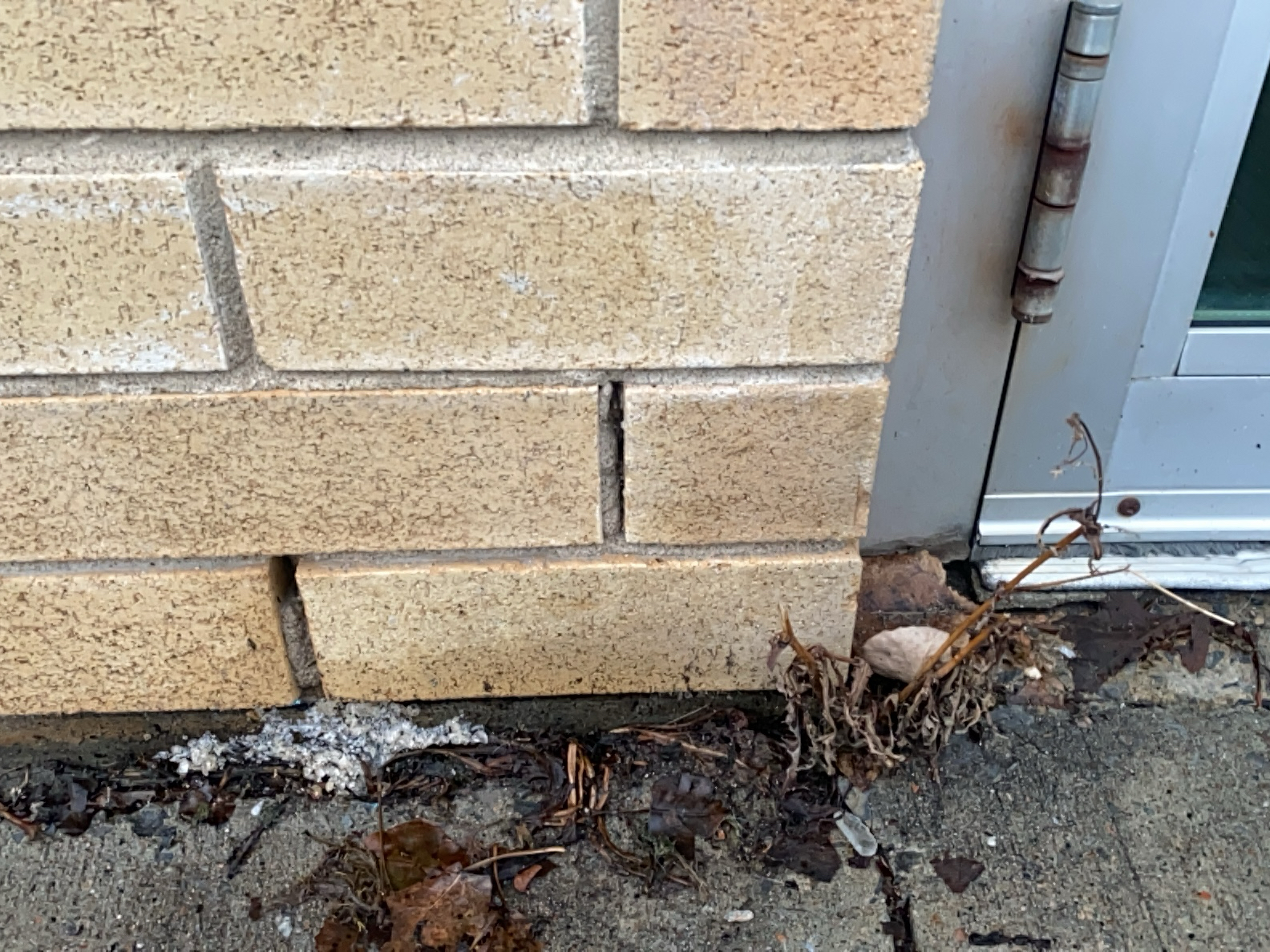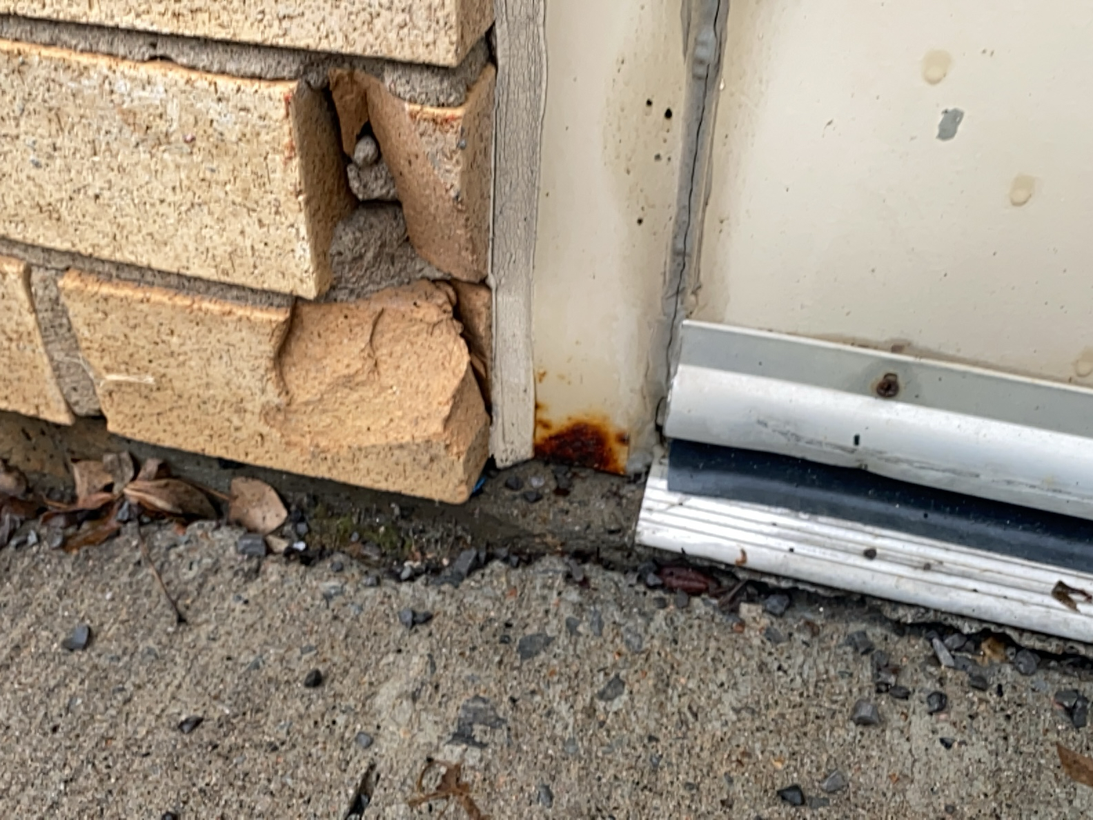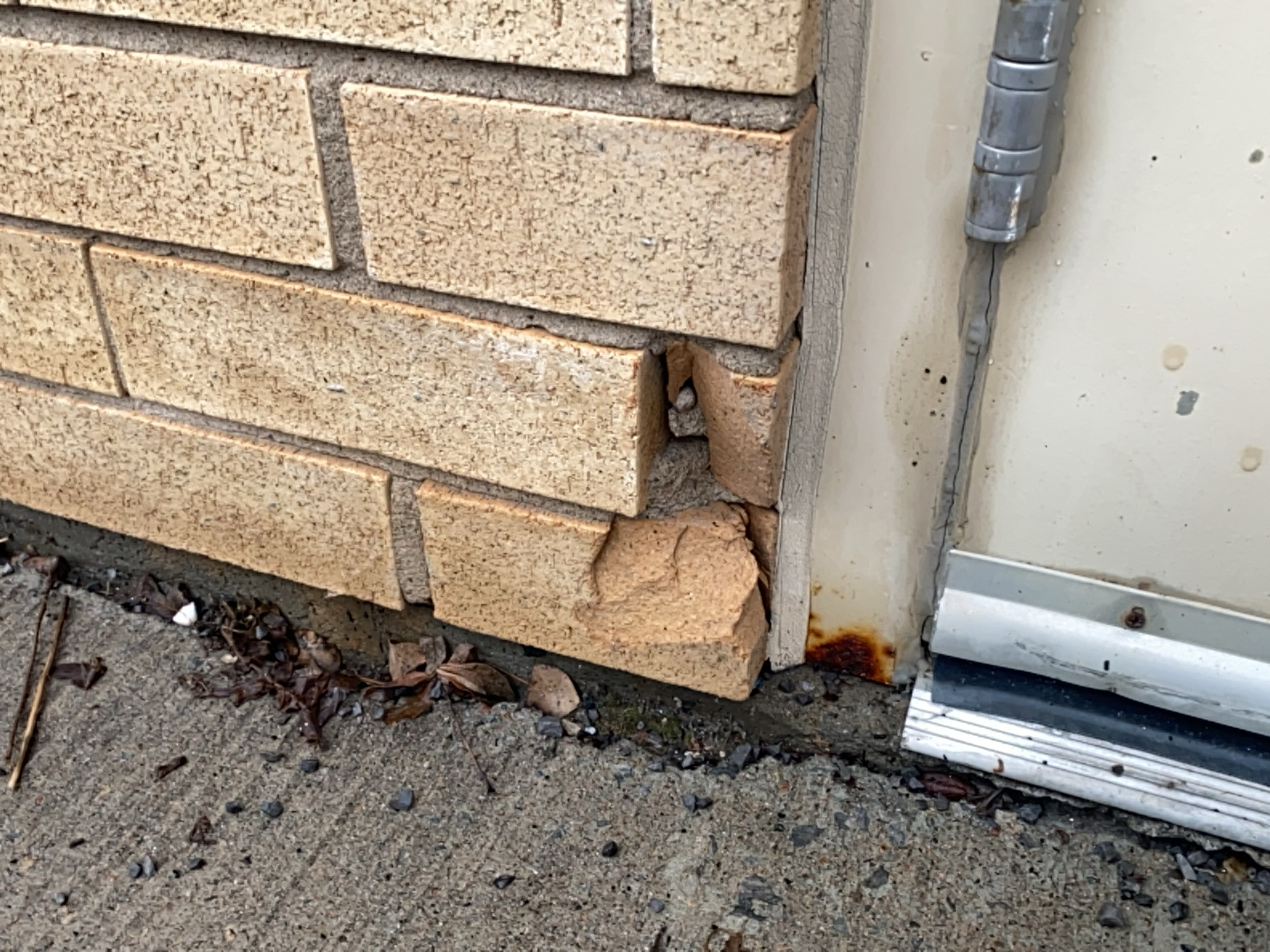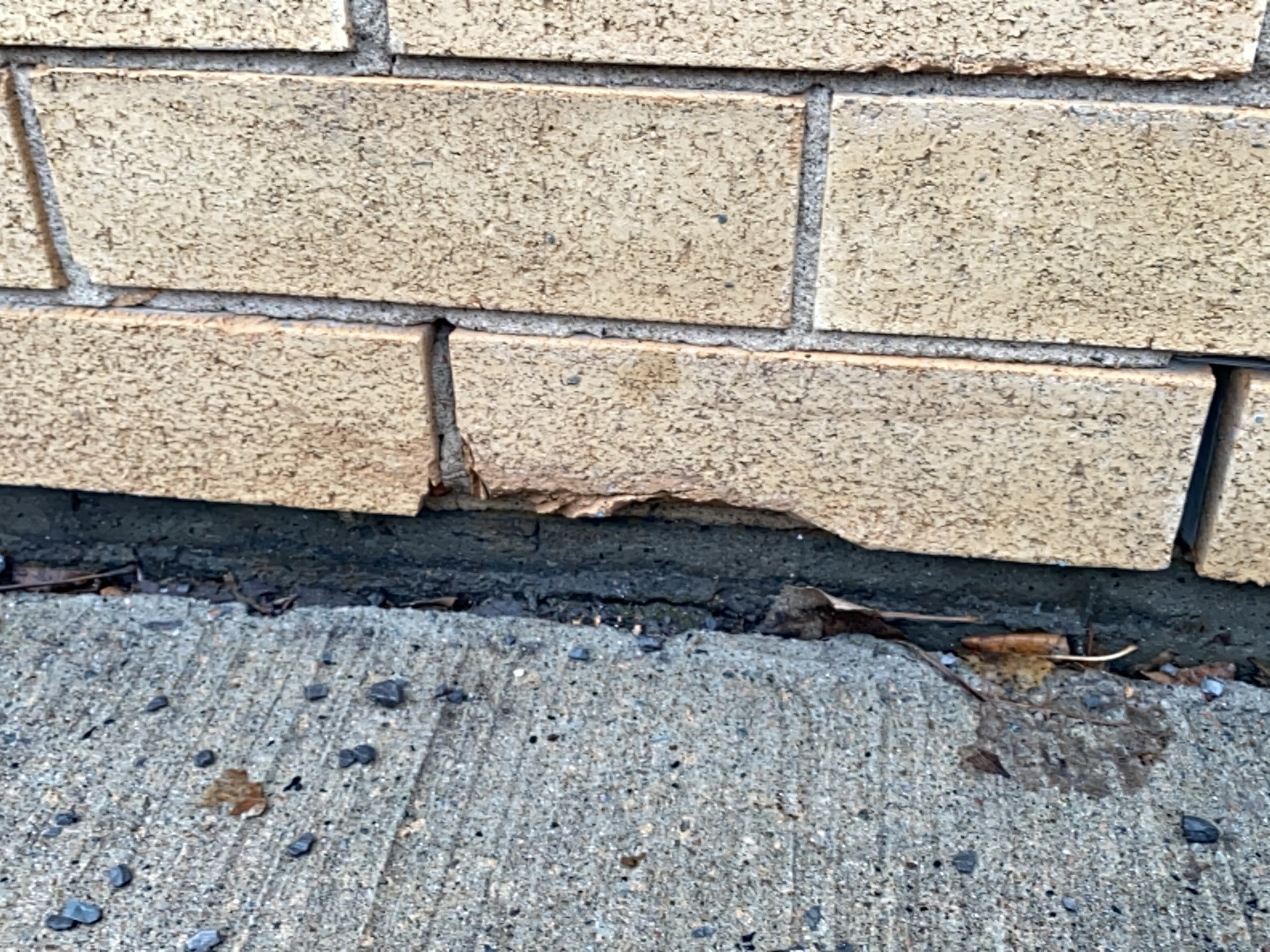 Mortier désagrégé/fissuré/manquant observé. Possiblement causé par un mouvement, le gel et dégel et les intempéries. Nous recommandons de refaire les joints de maçonnerie adéquatement afin d'éviter des dommages/détériorations causés par l'infiltration d'eau/humidité. Nous recommandons de consulter un maçon licencié afin d'évaluer et de corriger cette situation.