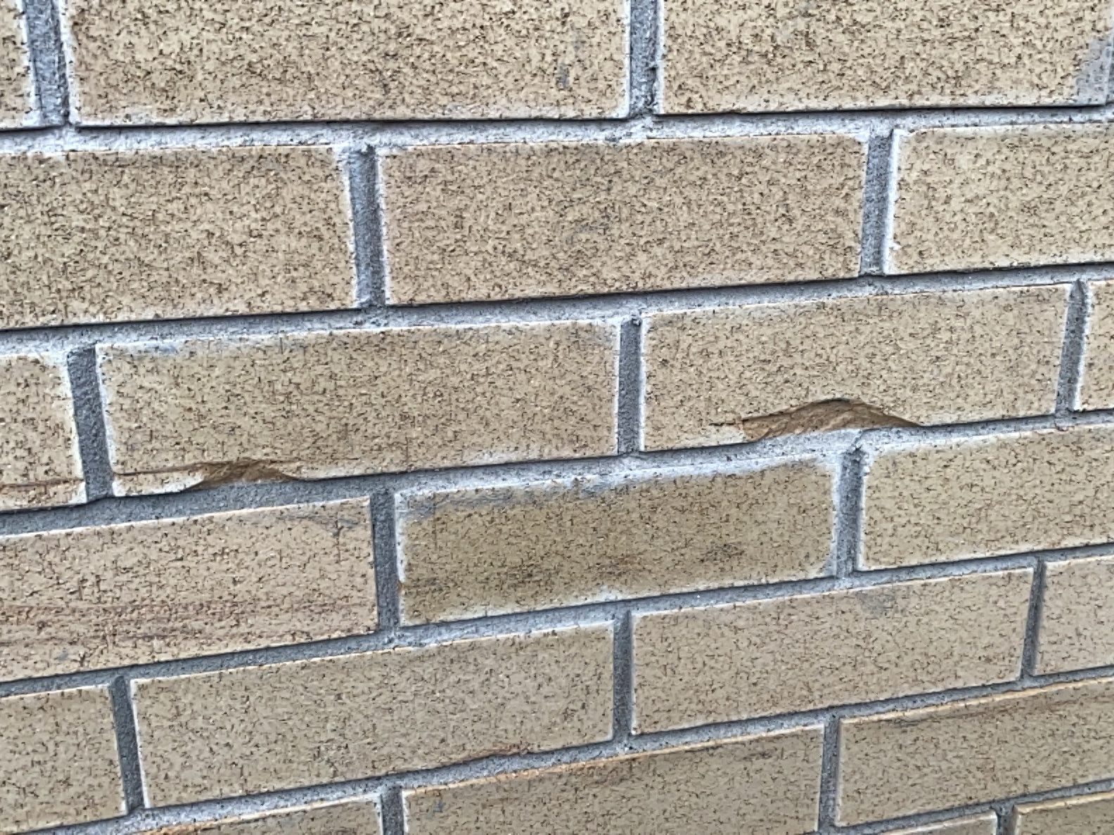 Briques endommagées/détériorées observées. Nous recommandons l'exécution de travaux de réparation.
