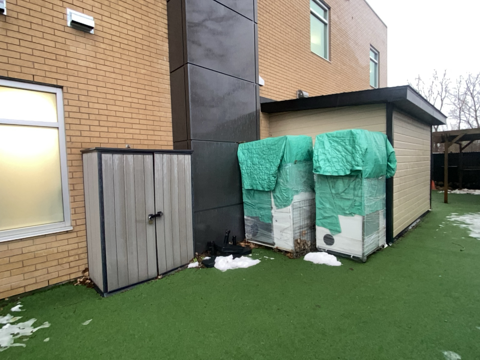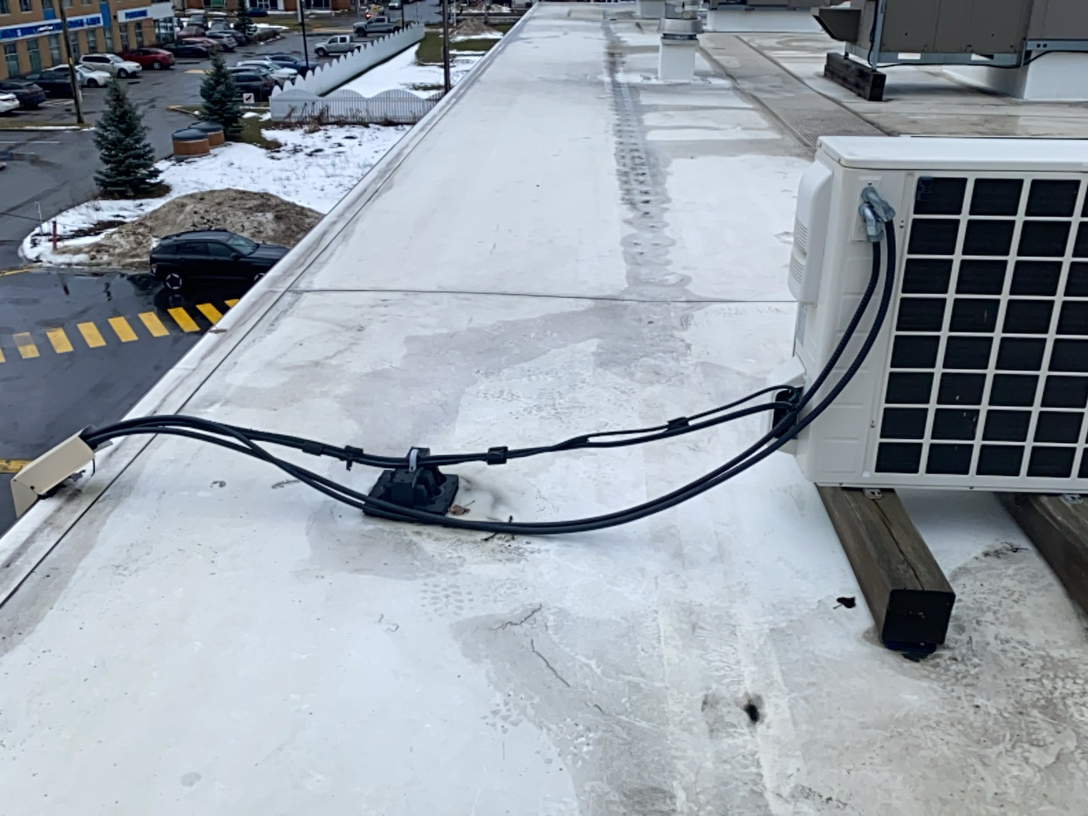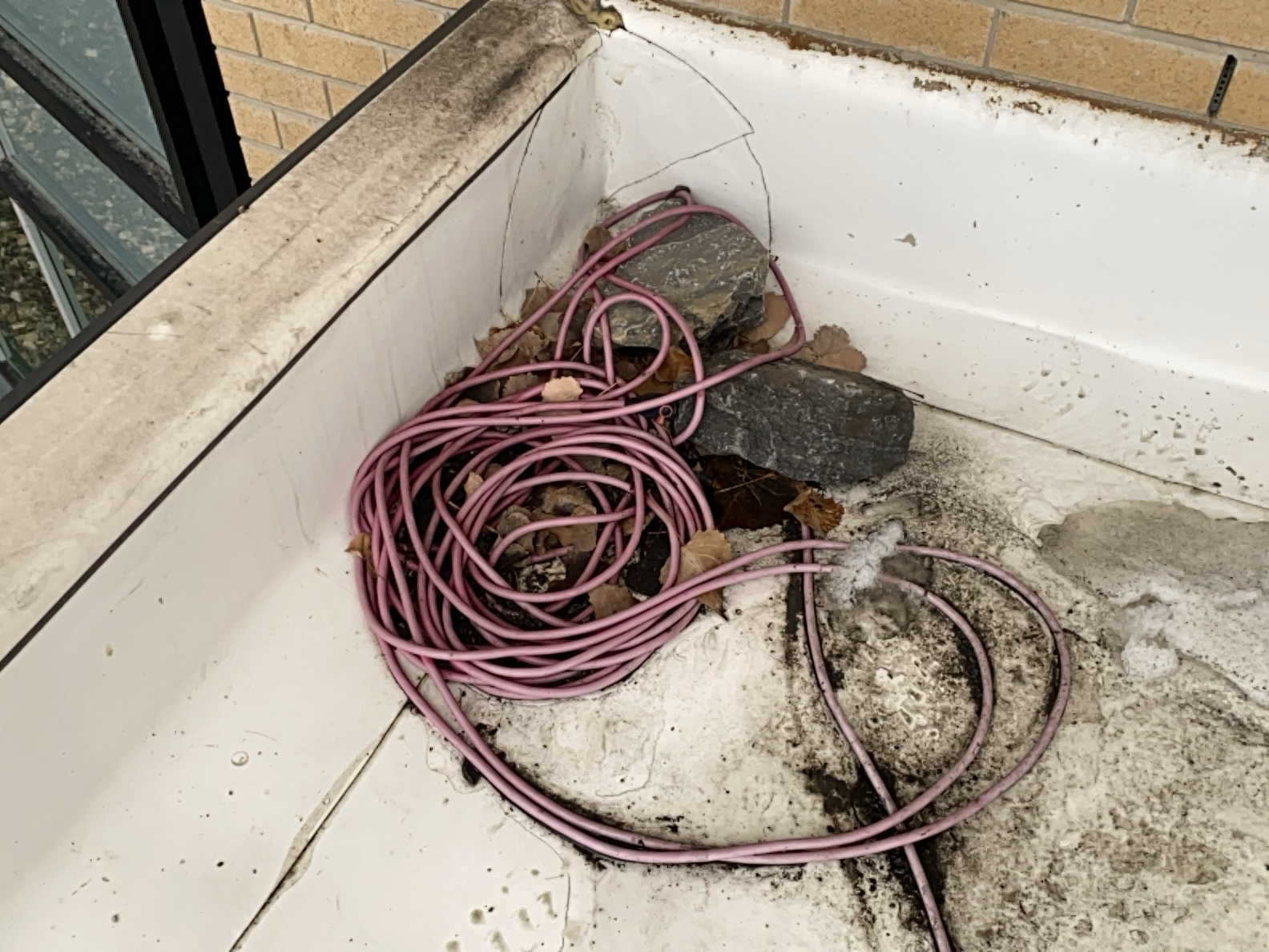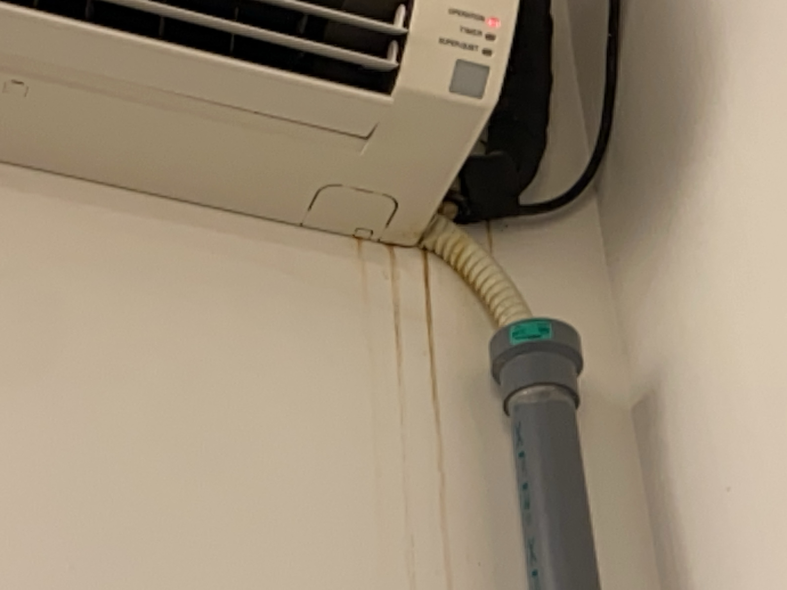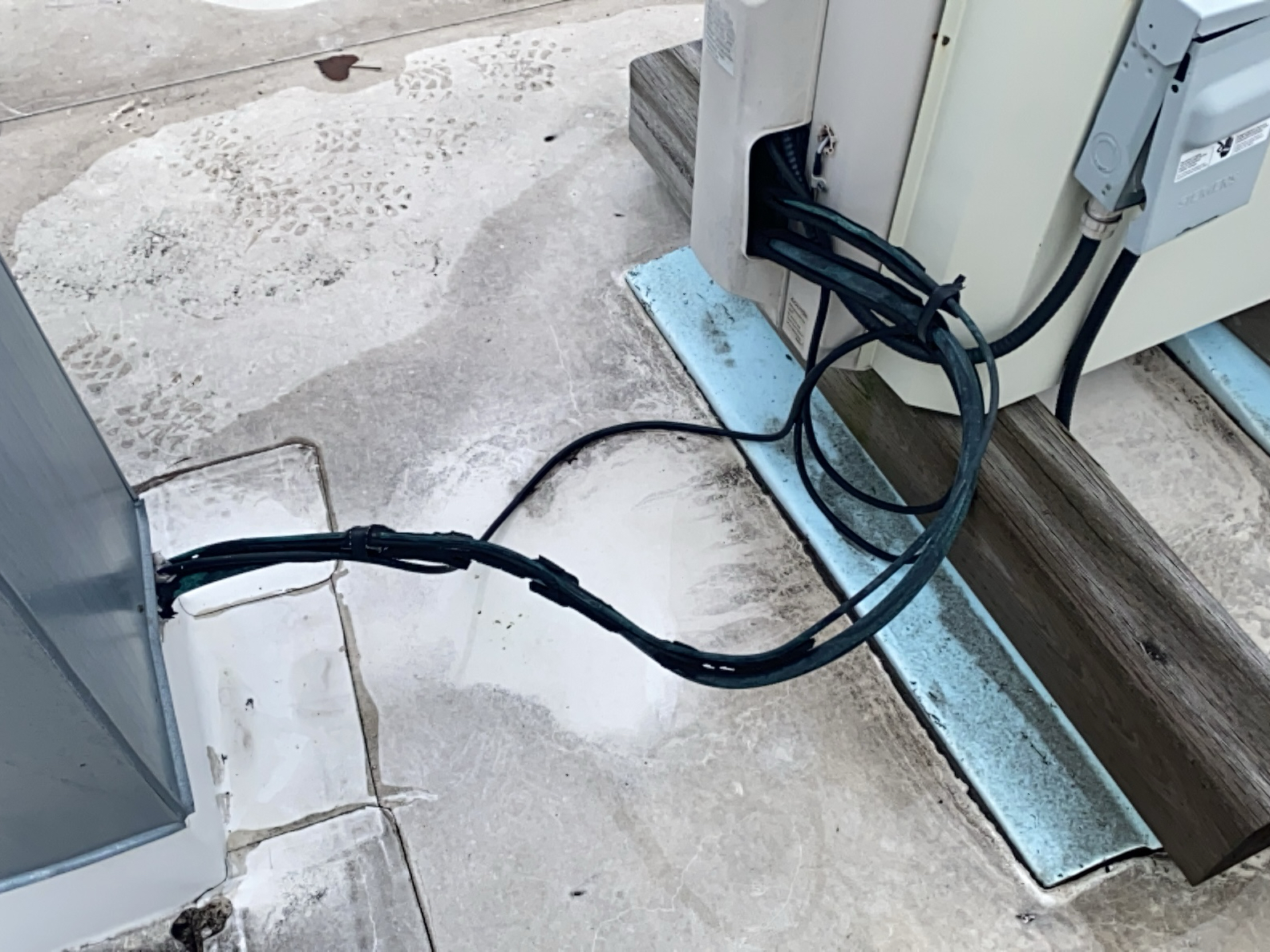 L'isolant du tube frigorifique est endommagé compromettant la protection contre les intempéries et la résistance aux variations de températures. Nous recommandons de corriger afin d'éviter une perte calorifique du système, une surconsommation électrique et une détérioration des tuyaux pouvant entraîner une fuite frigorifique/panne. Nous recommandons de consulter un spécialiste en la matière afin d'évaluer et corriger cette situation.