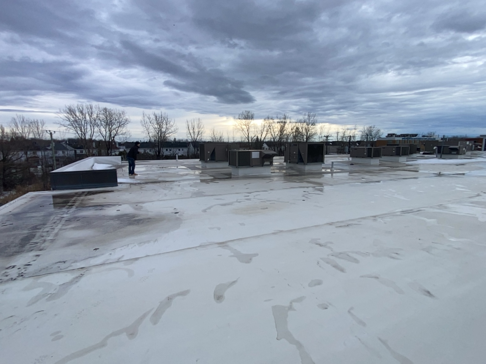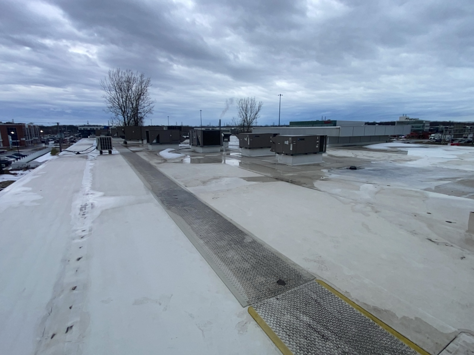 Le recouvrement de toit montre des signes d'usure normale pour son âge et son type de construction; cependant, des travaux d'entretien sont recommandés là où le matériau de la toiture est endommagé, exposé et/ou manquant. Nous recommandons de consulter un couvreur licencié afin d'évaluer et corriger cette situation. Veuillez noter que certains couvreurs pourraient refuser de faire quelque réparation que ce soit en raison de la garantie qu'ils doivent offrir pour leurs travaux.