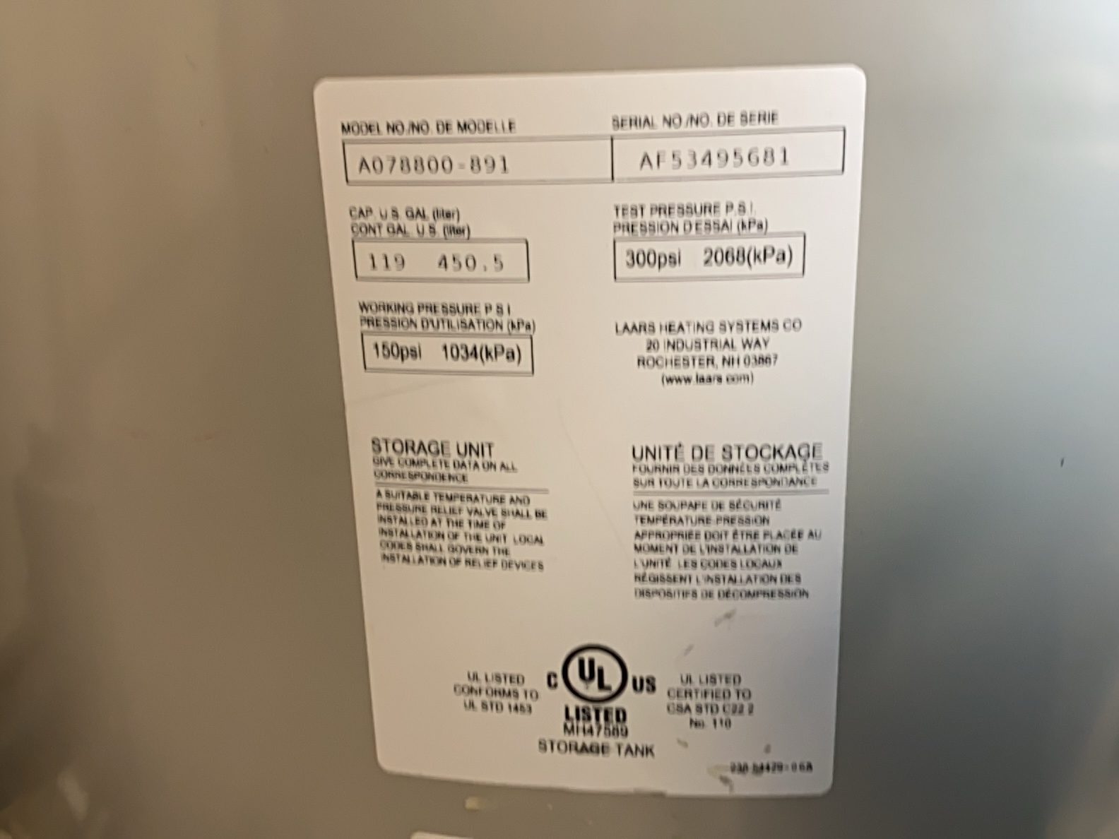 Rouille, calcaire et autres débris observés à cet appareil. Une vérification par un entrepreneur licencié est recommandée afin d'en assurer le fonctionnement adéquat et sécuritaire.