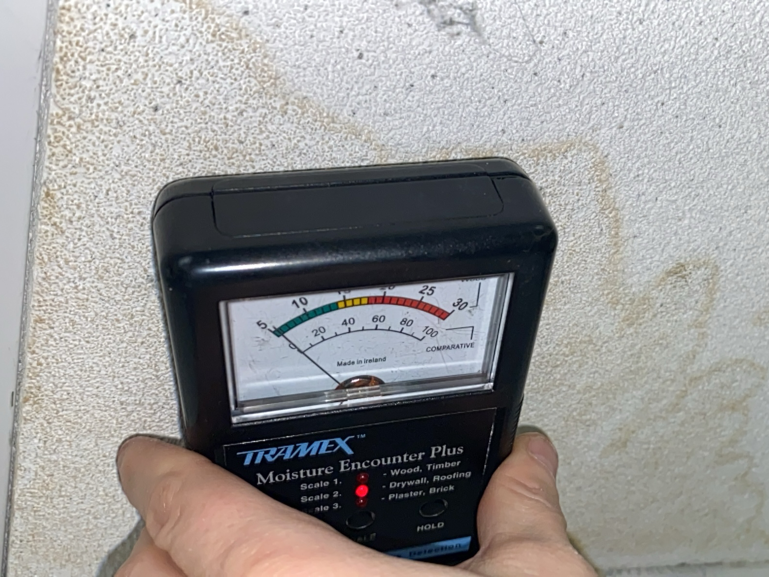 Veuillez noter qu’il est possible que l’inspecteur utilise un hygromètre (détecteur d’humidité) de marque TRAMEX pendant l’inspection. L’inspecteur utilisera l’appareil seulement s’il constate des signes pouvant indiquer de l’humidité ou de l’infiltration d’eau. Il utilisera une méthode de comparable en mesurant le taux d’humidité de 2 endroits différents sur la même composante. Son utilisation sera notée au rapport spécifiquement aux endroits où il aura utilisé l’hygromètre.