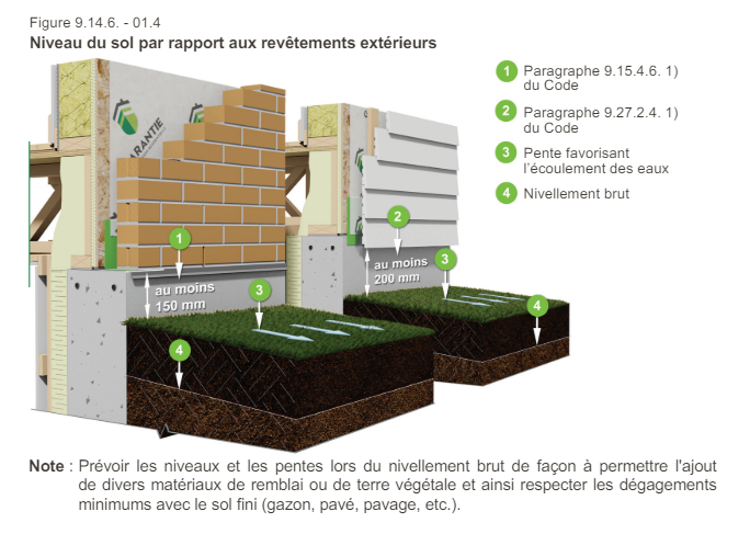 Pente négative observée. Nous recommandons de corriger ceci afin d'éloigner l'eau de la fondation.