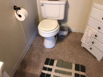 The toilet in the 2nd floor undefined lower level bathroom has not been caulked to the floor. Caulking the toilet to the floor is recommended and even required though opinions on this can vary. Caulk the toilet to the floor, but leaving a gap on the back of the toilet that remains un-caulked so if the toilet leaks, water has an escape route. The biggest risk of not caulking the toilet to the floor is that the toilet can become loose which is the biggest problem here. Repair as recommended by a licensed plumber.