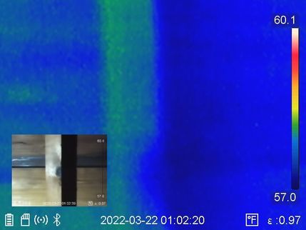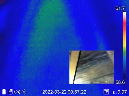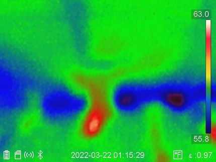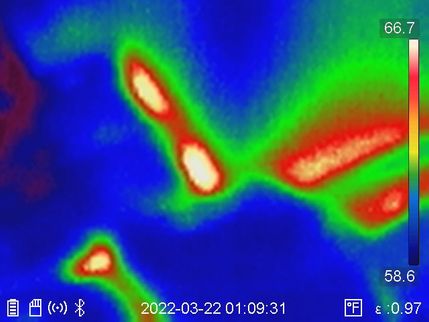 IR photos show differences in temperature of the surfaces only. Brighter spots indicate warmer/hotter. Darker spots indicate cooler/colder.