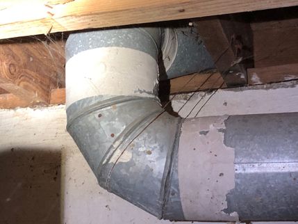 Old white insulation / tape was noted on the heating ductwork. This product may contain asbestos. Asbestos testing is beyond the scope of this inspection. Asbestos fibers can pose a health risk if occupants get exposed to airborne particulate from this material. Please note that most buildings from this era have building materials that contain asbestos. Consult with an asbestos remediation specialist as desired for more information about identifying, removing or encapsulating asbestos-containing materials.