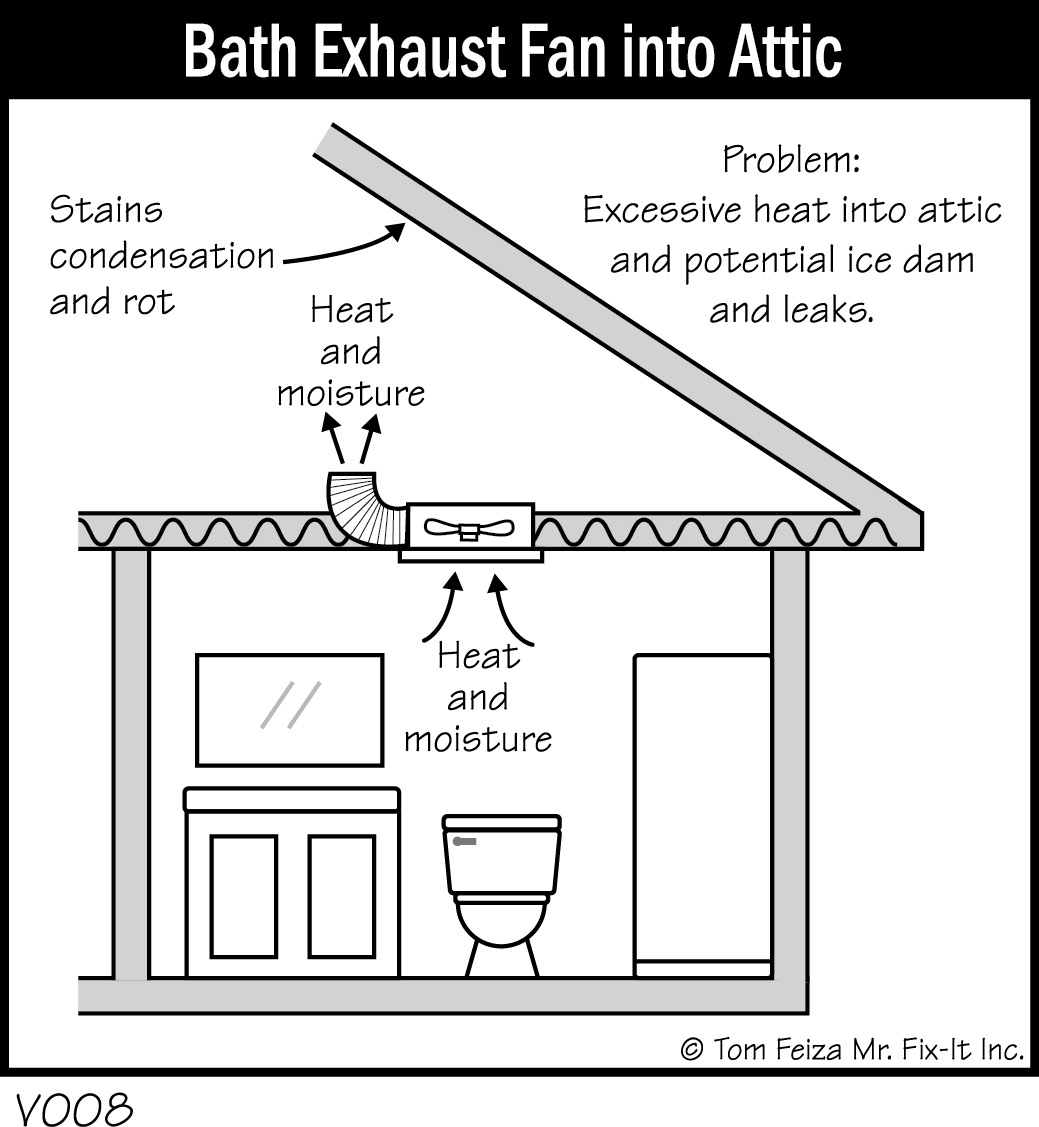 - Terminates to an exterior location or above a drain, though this is not always possible