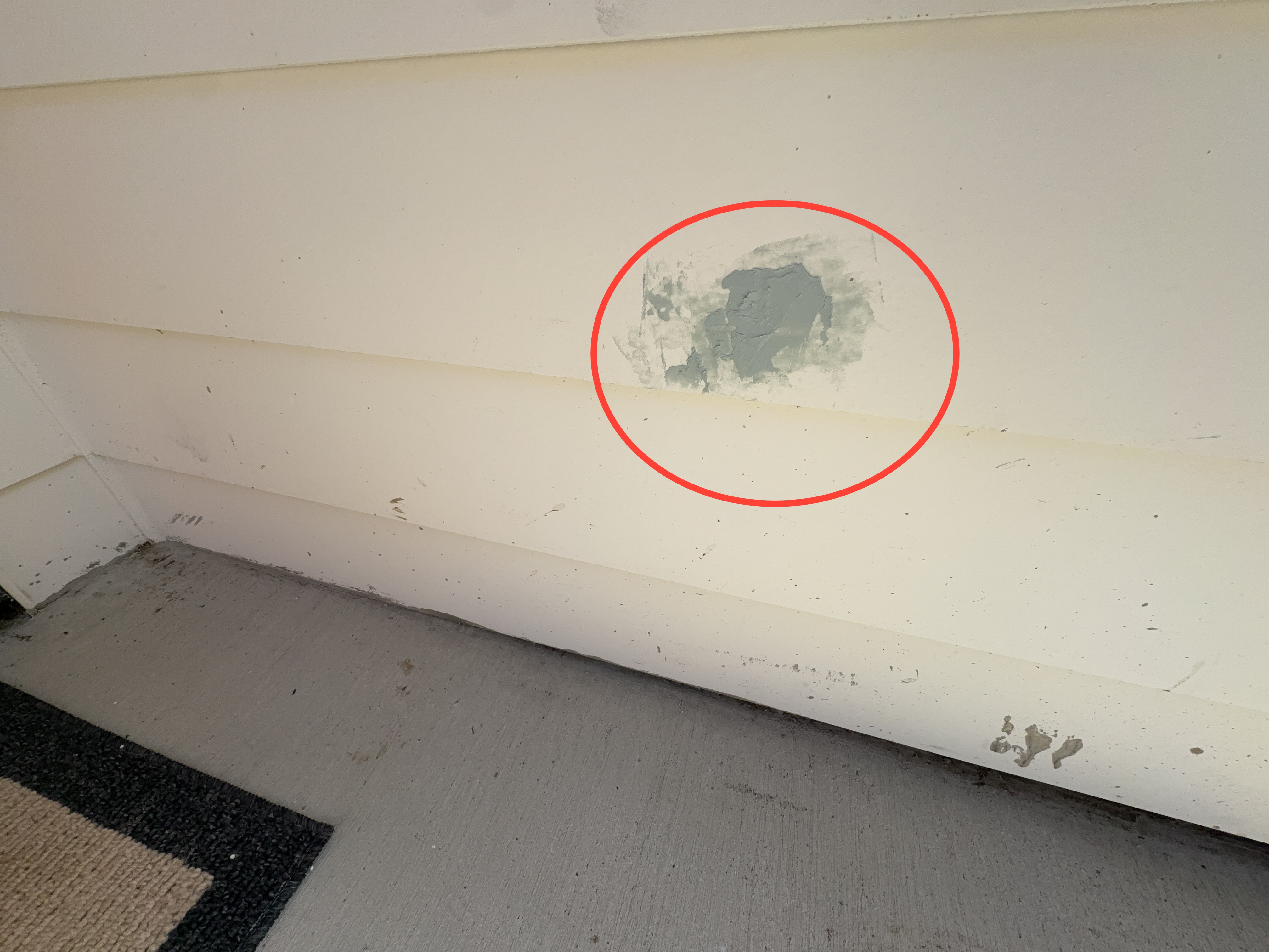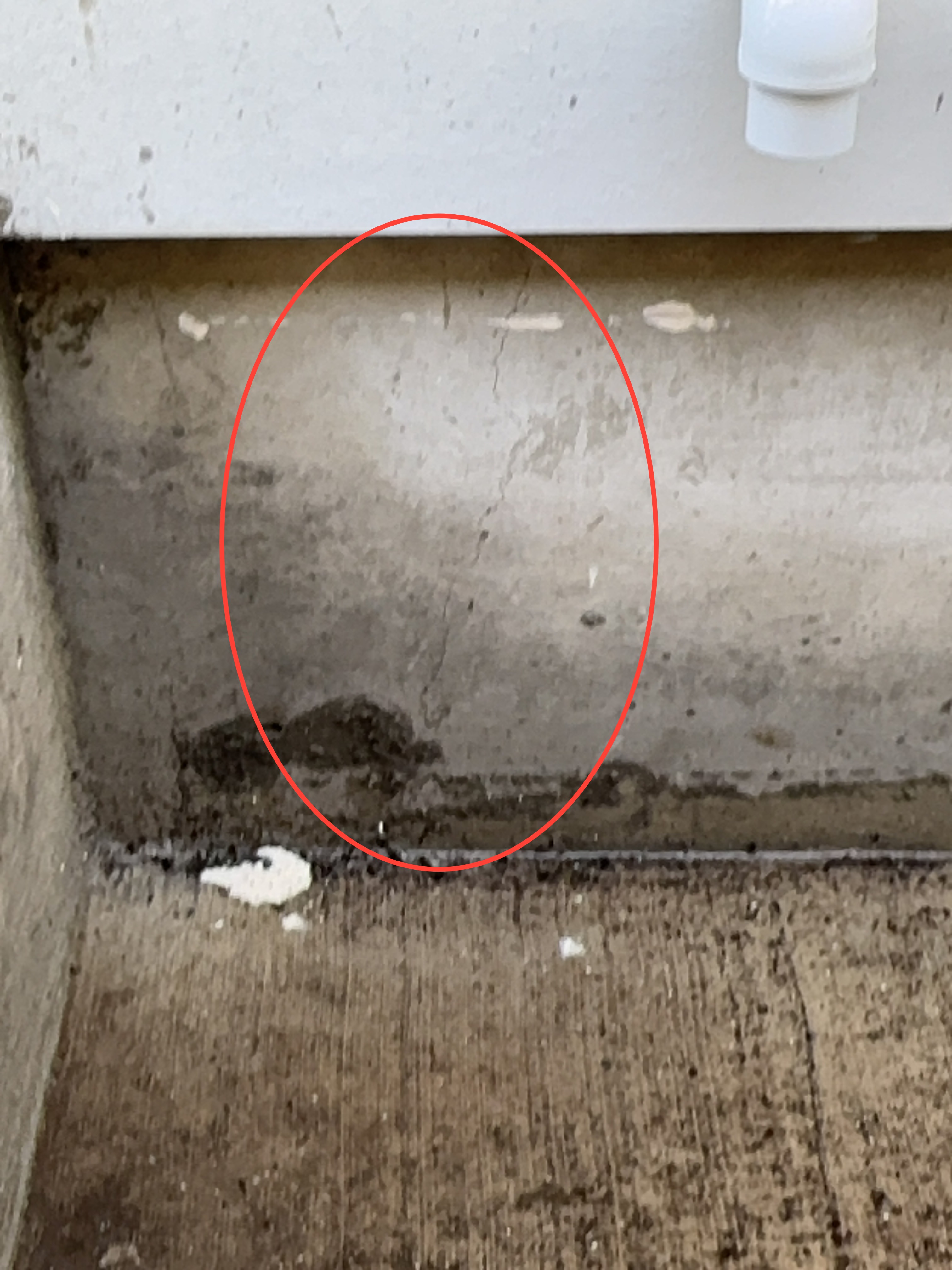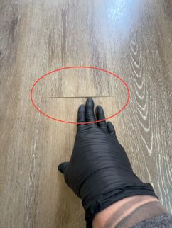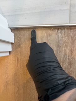 Gap noted at the flooring material. Repair as needed to prevent water entry.