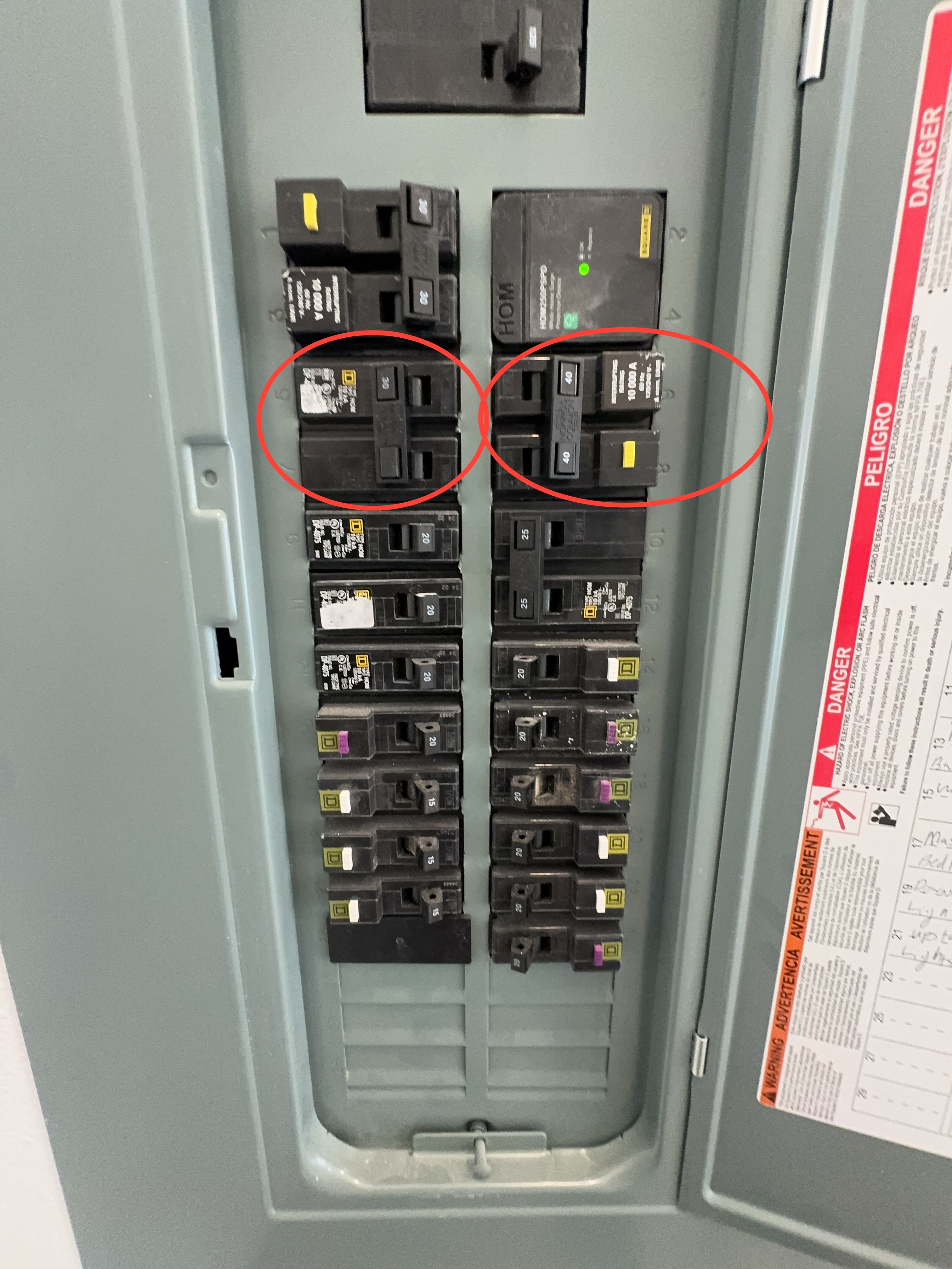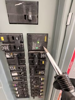 Visible portions of the circuit breakers appeared intact. We do not test all circuit breakers for proper function. If a detailed testing of the breakers and electrical circuits is desired, consult with a licensed electrician.