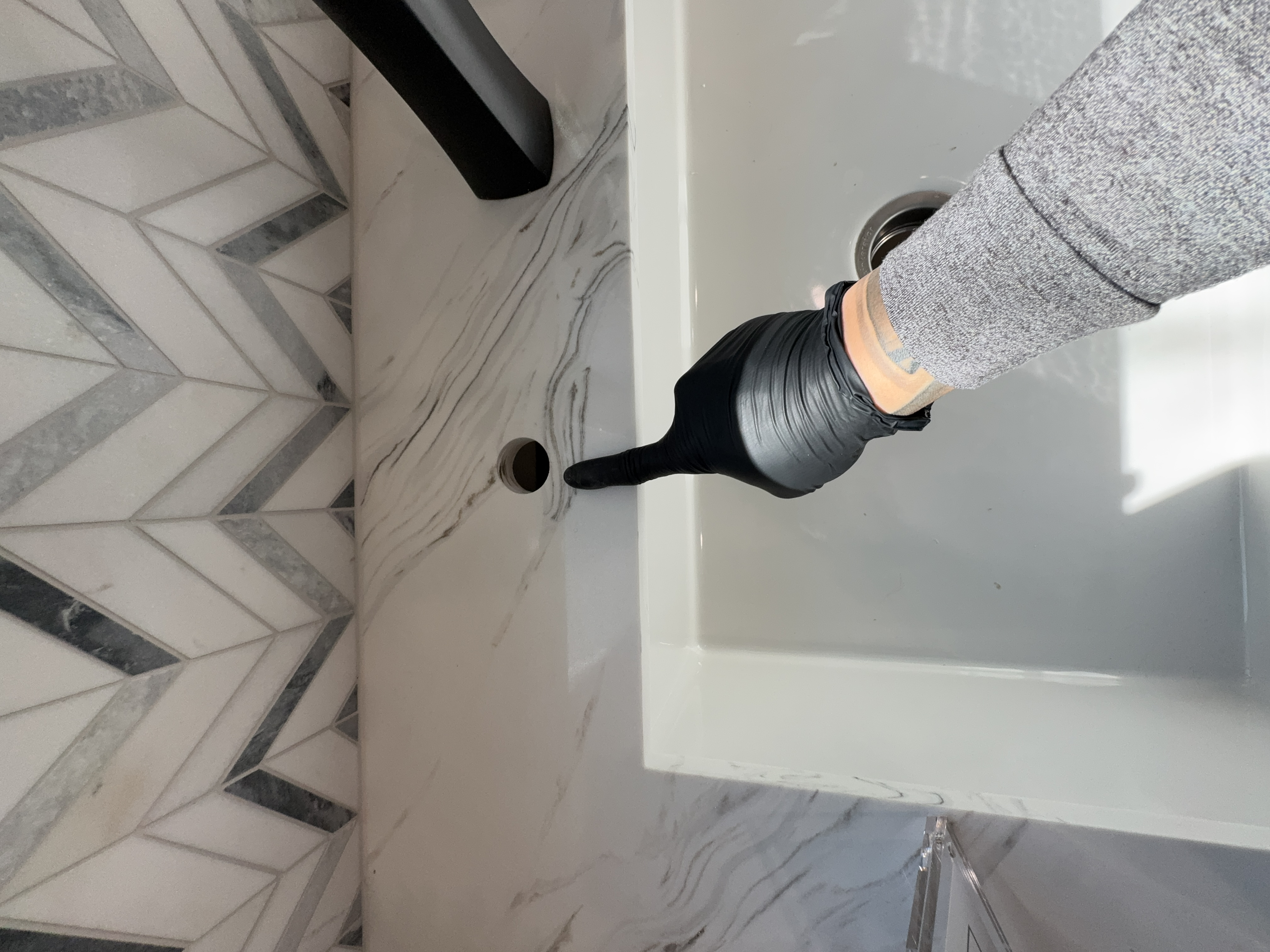 The kitchen sink has a visible gap that requires additional trim or sealing to prevent moisture intrusion and ensure a finished appearance. Recommend proper sealing or trim installation. The kitchen sink has a visible gap that requires additional trim or sealing to prevent moisture intrusion and ensure a finished appearance. Recommend proper sealing or trim installation.