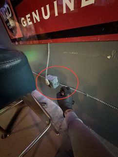 The loose electrical junction box in the bar needs to be secured for improved safety.
