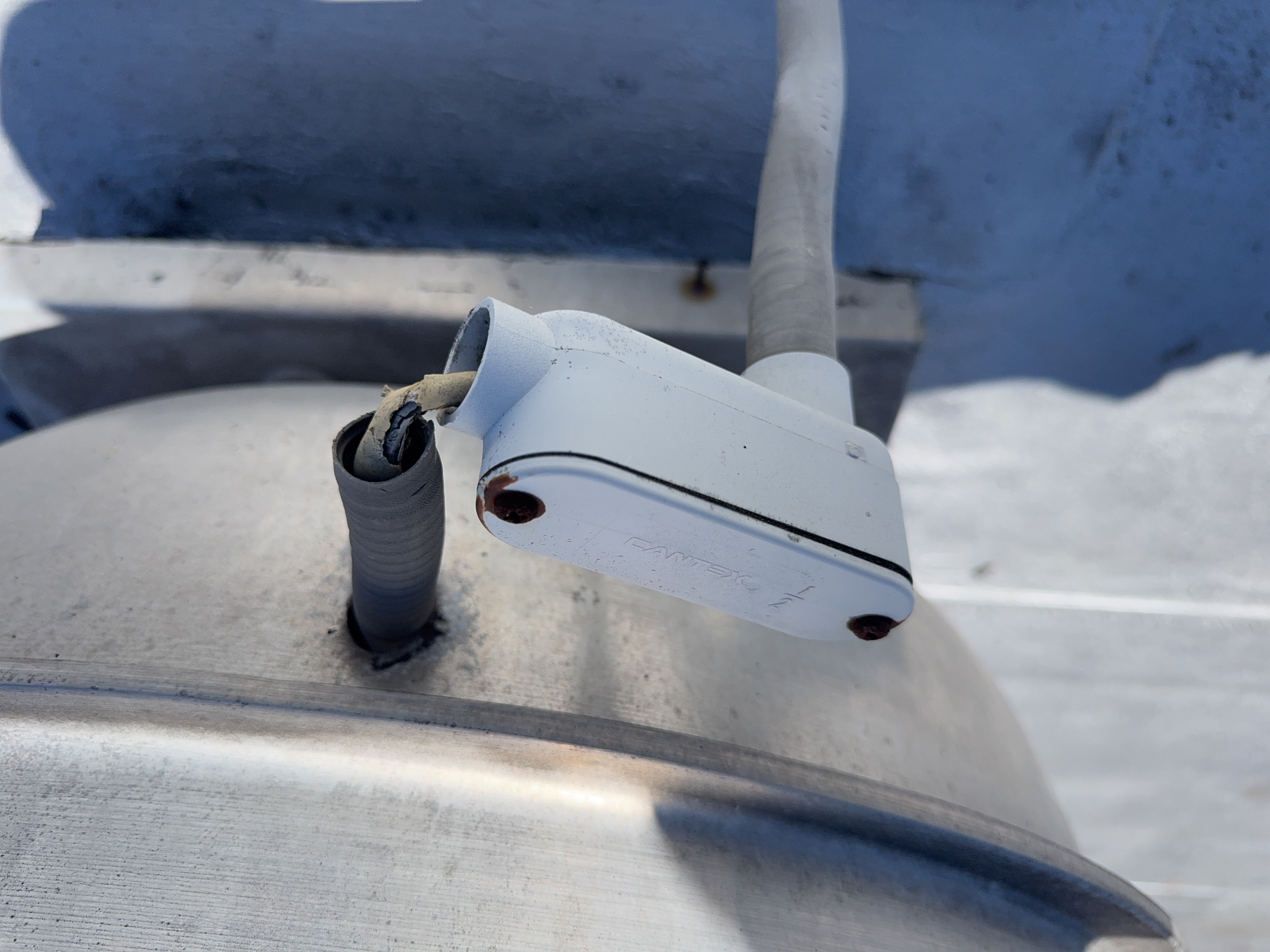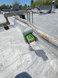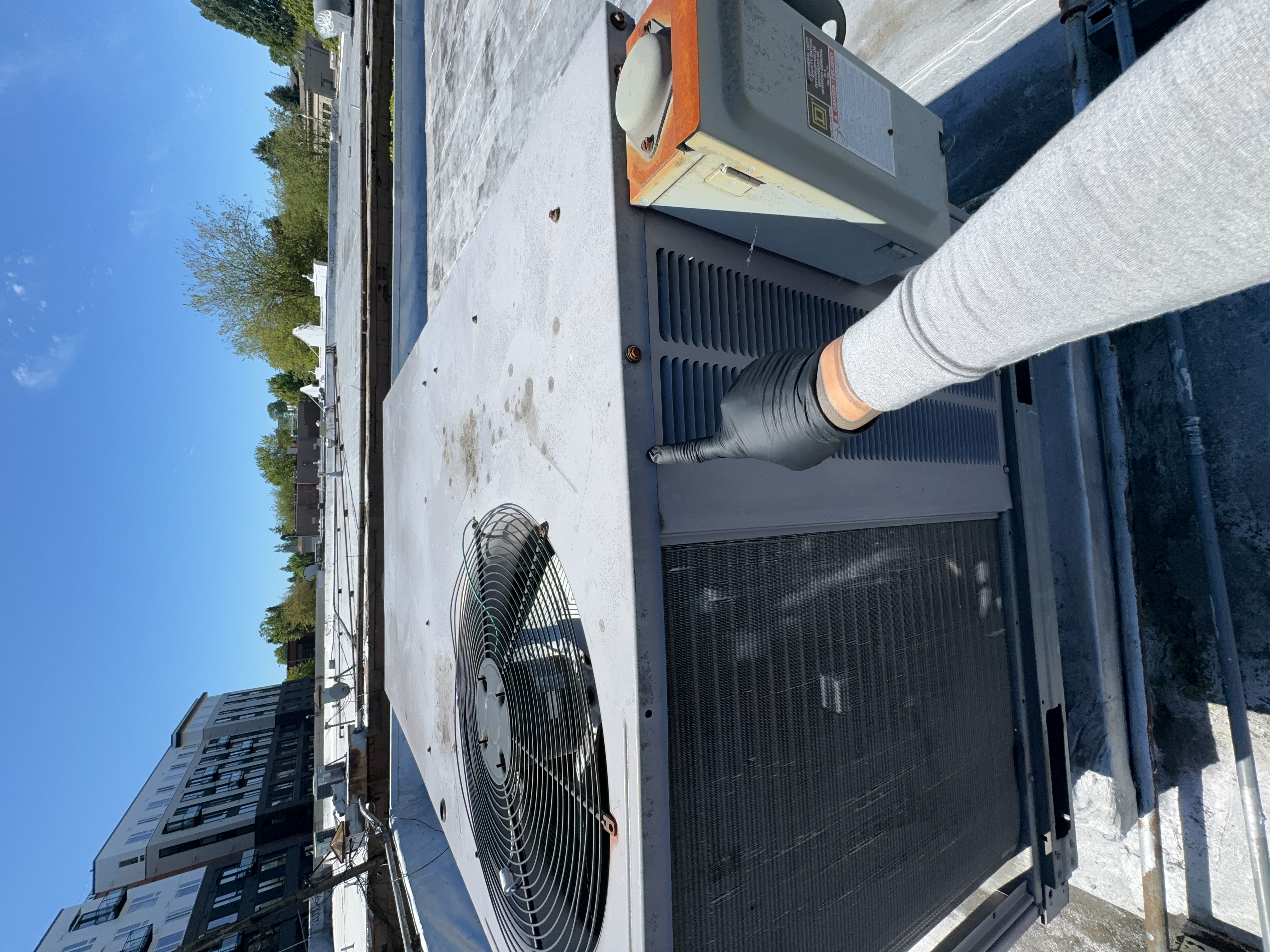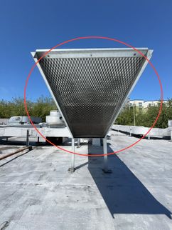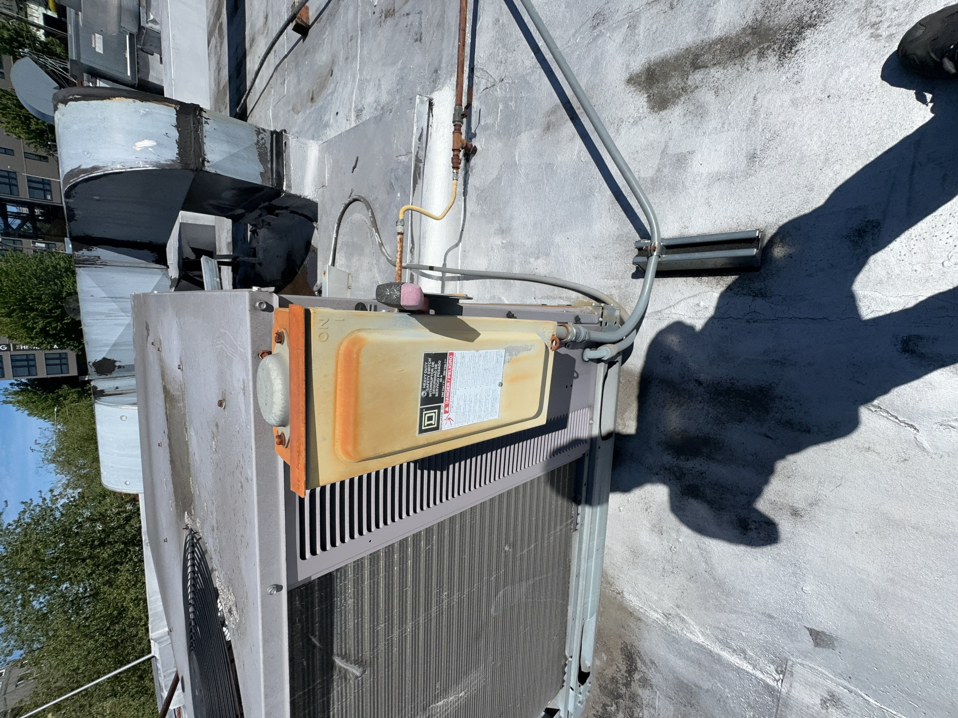 The chiller on the roof has worn out insulation. It is recommended to add insulation to improve efficiency and prevent energy loss.