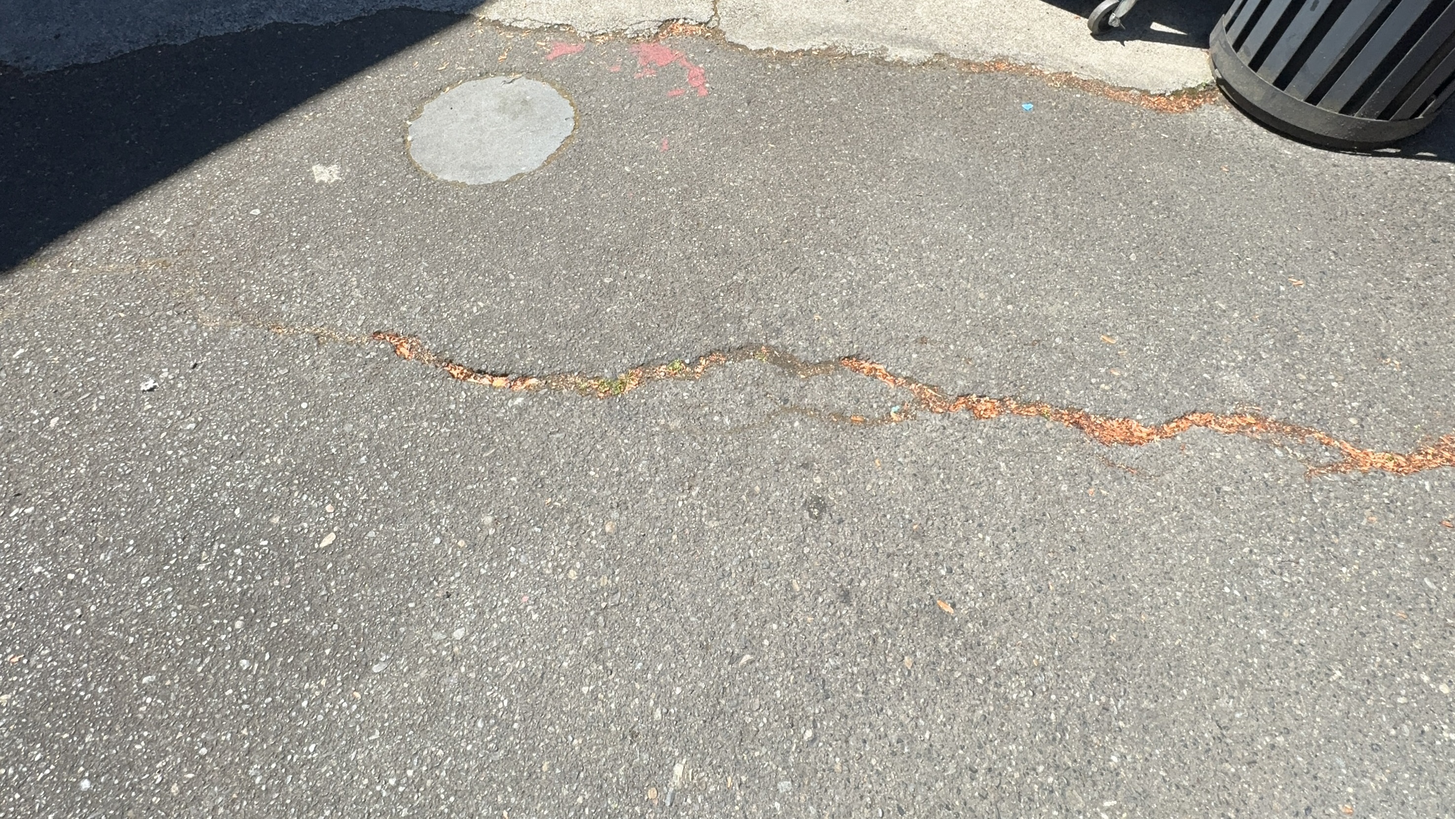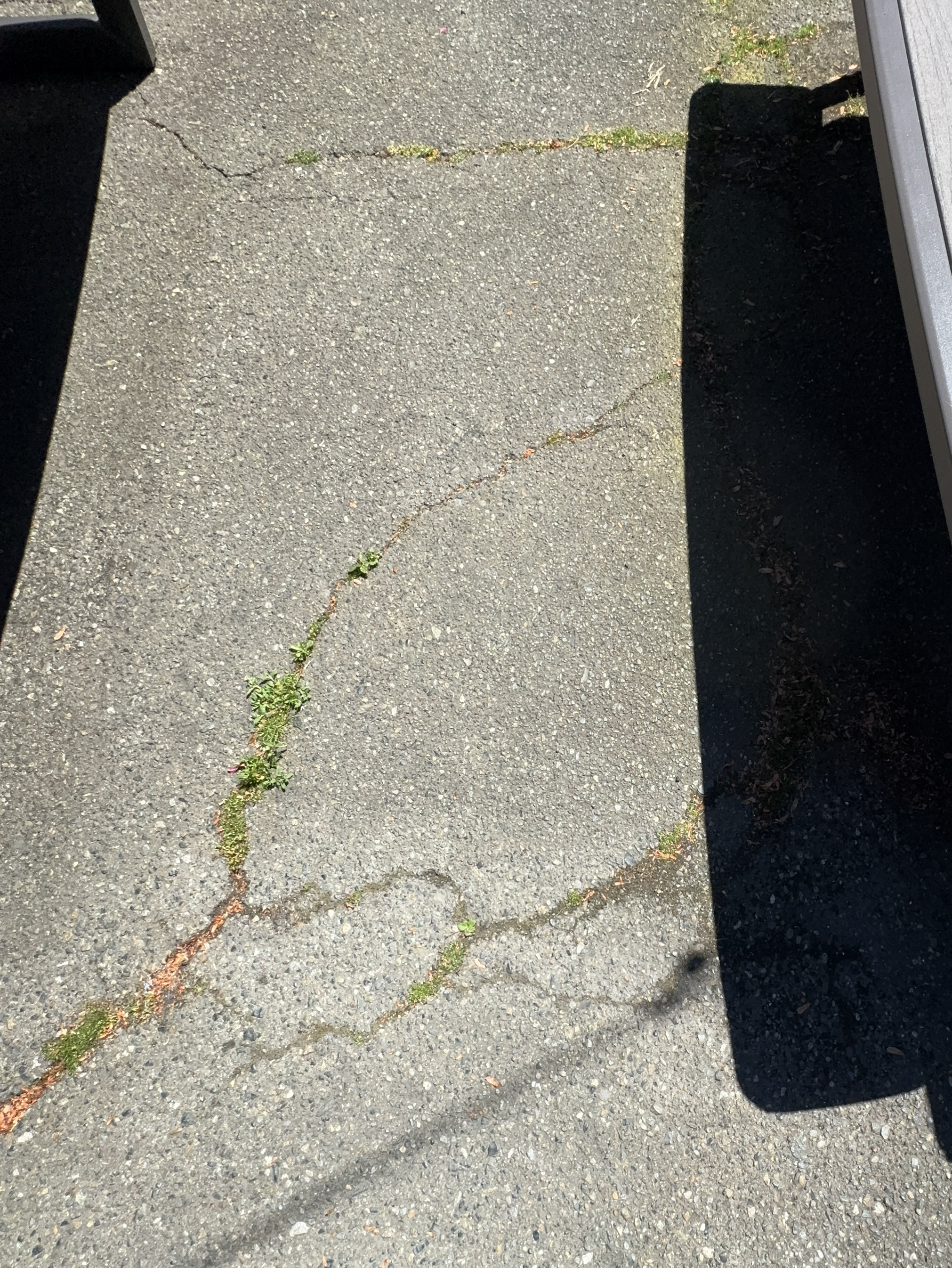 Front walk shows cracks with the potential for trip hazards. This is a safety concern. We suggest consulting with a qualified paving contractor for possible repair or re-paving options to improve safety.