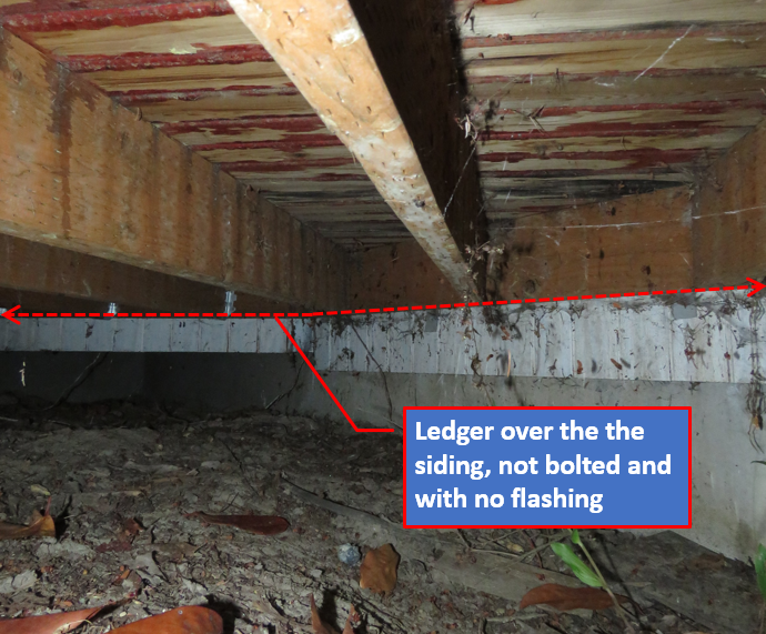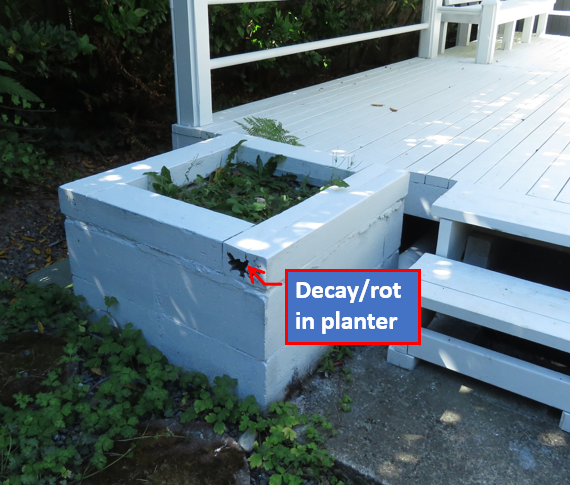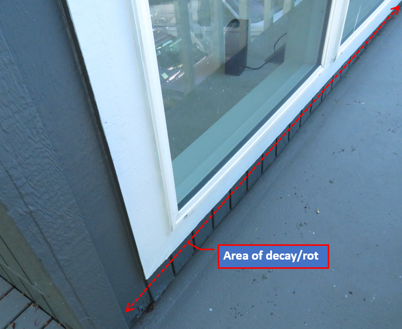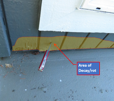 Wood Decay Fungi (wood rot), are filamentous organisms which begin as microscopic spores that land on the surface of wood, and germinate to produce thin strand like cells called hyphae. Hyphae grow through the wood and secrete enzymes which degrade and weaken the wood. Decay requires: (1)adequate moisture, (2)ambient temperature (32º to 110º), (3) oxygen, (4) a food source. Wood moisture levels above 20-30% are considered conducive to wood fungal rot. Damaged wood typically will need to be replaced. Ultimately the source of moisture must be eliminated even if all of the fungal organism cannot be eliminated. Specific locations can be found in the appropriate Chapter sections in the report.