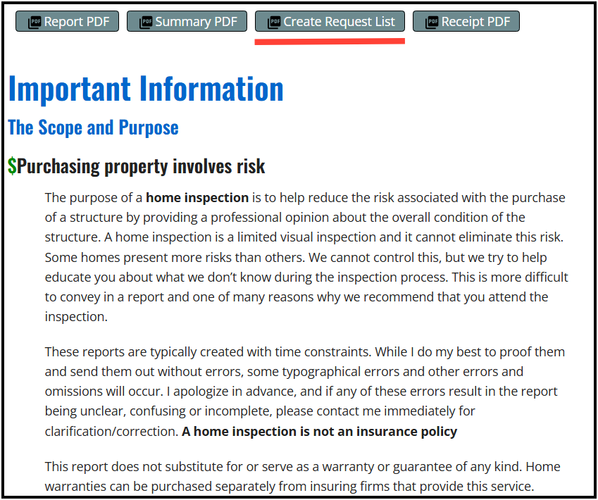 These reports are typically created with time constraints. While I do my best to proof them and send them out without errors, some typographical errors and other errors and omissions will occur. I apologize in advance, and if any of these errors result in the report being unclear, confusing or incomplete, please contact me immediately for clarification/correction. A home inspection is not an insurance policy