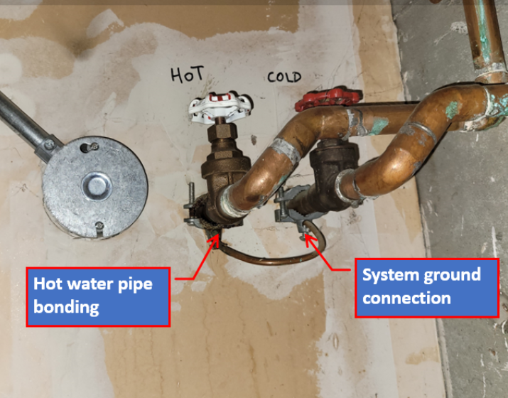 - ◽Not visible. When metal gas pipes are installed in the building, current standards require that they be properly bonded to the electrical grounding system. The licensed electrical contractor should insure that all metal piping is properly bonded to the building electrical grounding system.
